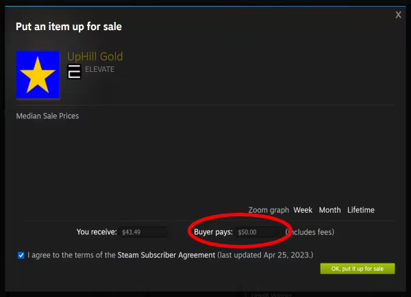 // Steam takes 15% of every Community Market sale, so the actual amount players will receive for their Gold Star is around $43.49 depending on local taxes.