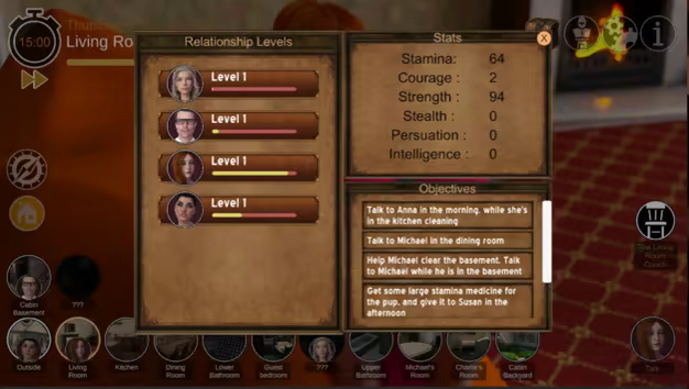 On one fateful night, you stumble upon a strange cabin in the middle of the woods. You have no recollection as to who you are, or why the hallucinations and voices in your head guided you there. After getting acquainted with the house guests, you realize all is not as it seems, and must uncover the secret behind a series of mysterious events. You must interact with the characters, gain their trust, form relationships, gather clues to uncover the truth, manipulate people, and decide their fates.