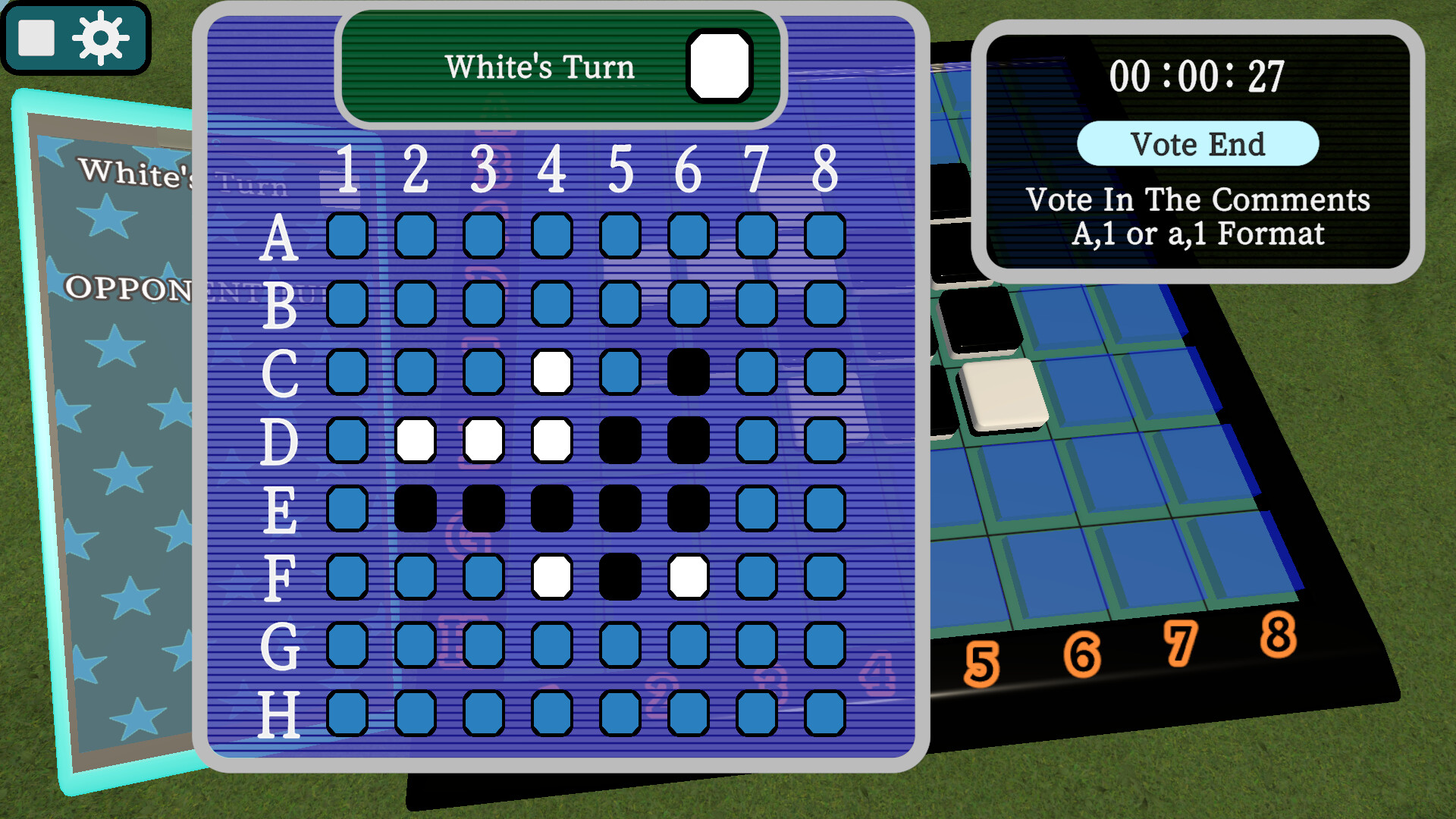 REVERSI xVSx is a Reversi game with modern features, including custom 3D graphics, user-created AI, online multiplayer, and streamer-viewer match functionality.