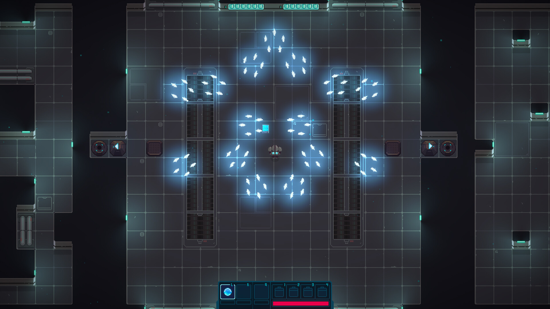 Program spell-shooting towers to aim at detectors. When hit, these detectors will light up, triggering events such as opening bridges or doors to progress through levels. It's definitely not always as straightforward as it sounds.