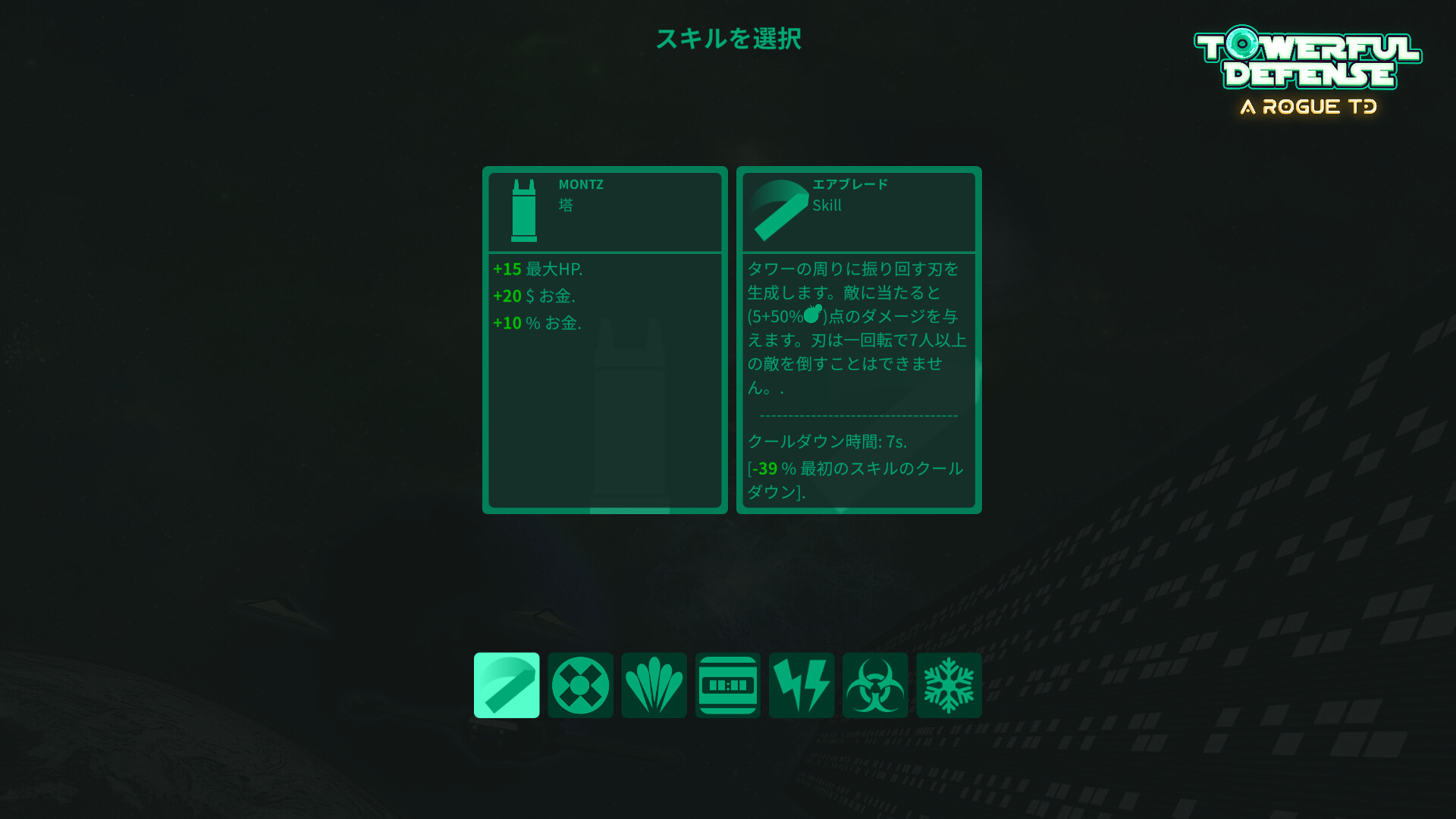 ゲームでは、あなたの防御タワーが中心となり、敵は四方八方から襲ってきます。防御タワーは自動で敵を射撃し、同時に他の受動的な支援ユニットを配置することもできますが、最も効果的なのはあなたの手動スキルなんです!最大四つのスキルを装備できます。それぞれのスキルは二回アップグレード可能で、しかもユニークな強化効果と少なくとも三つの特性を持っています。戦闘のニーズと個人のスタイルに合わせてスキルの組み合わせをカスタマイズできます。