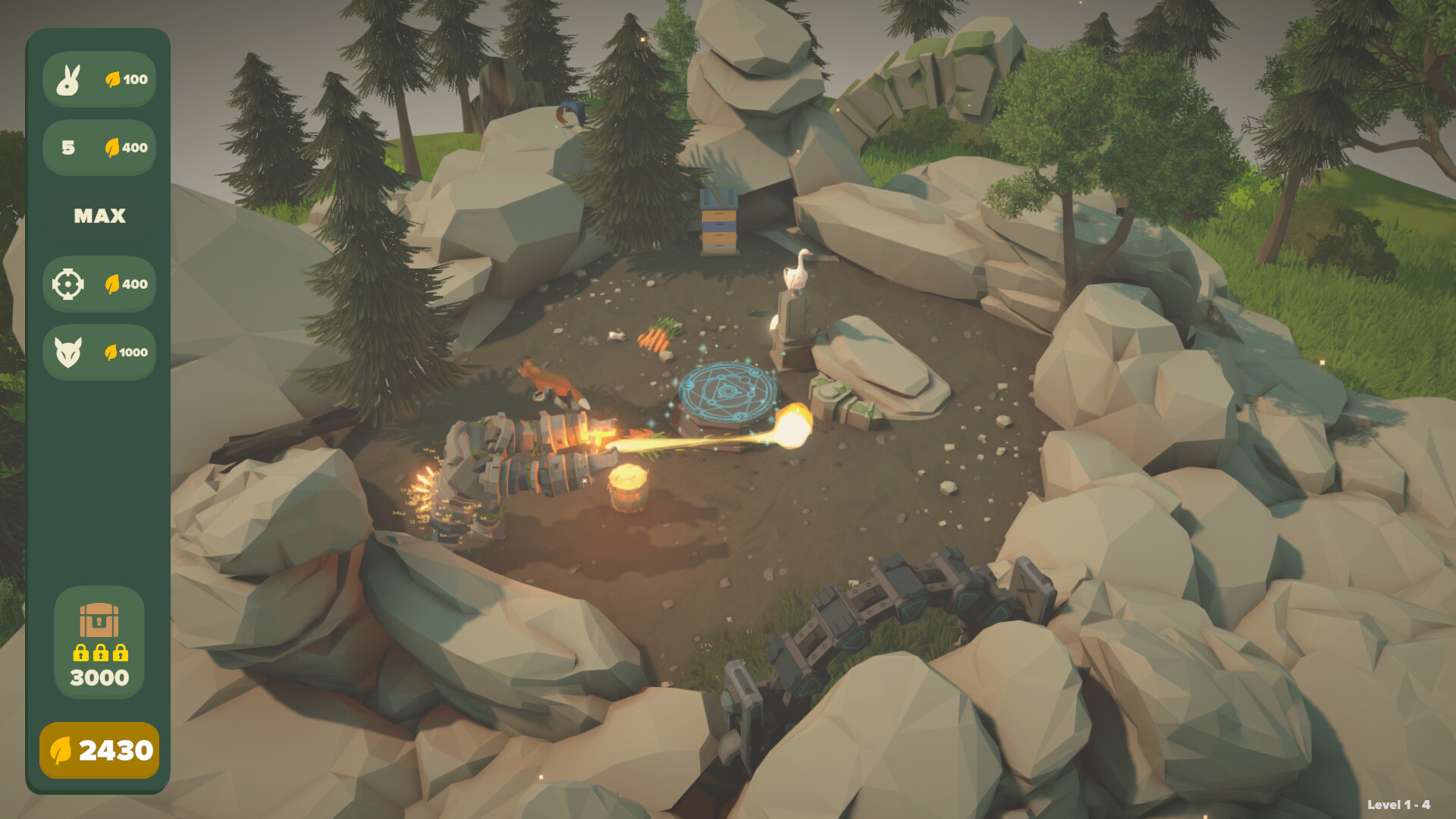 Advance levels by unlocking special chests using Leaf Points. Each chest contains a unique companion with special abilities to help you maintain the ecosystem. You can bring up to three companions per level to increase your efficiency. For example, Daisy can breed bunnies, while Ferdinand will lay eggs, which will bring you a large number of Leaf Points.