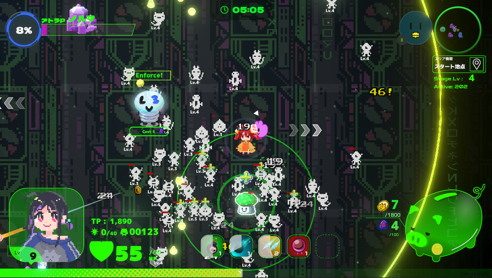 Use your mined cryptocurrency to buy new avatar data at the shop, change into the "ideal you," and challenge the deeper layers!