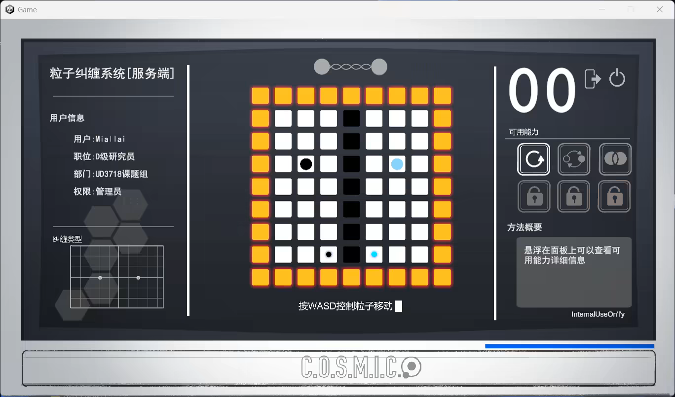 谜题取材自物理学中"量子纠缠"的概念,游戏中玩家需要操控两个自旋相反的粒子,通过改变"磁场"控制粒子纠缠和通过电场等机制让粒子到达指定位置.