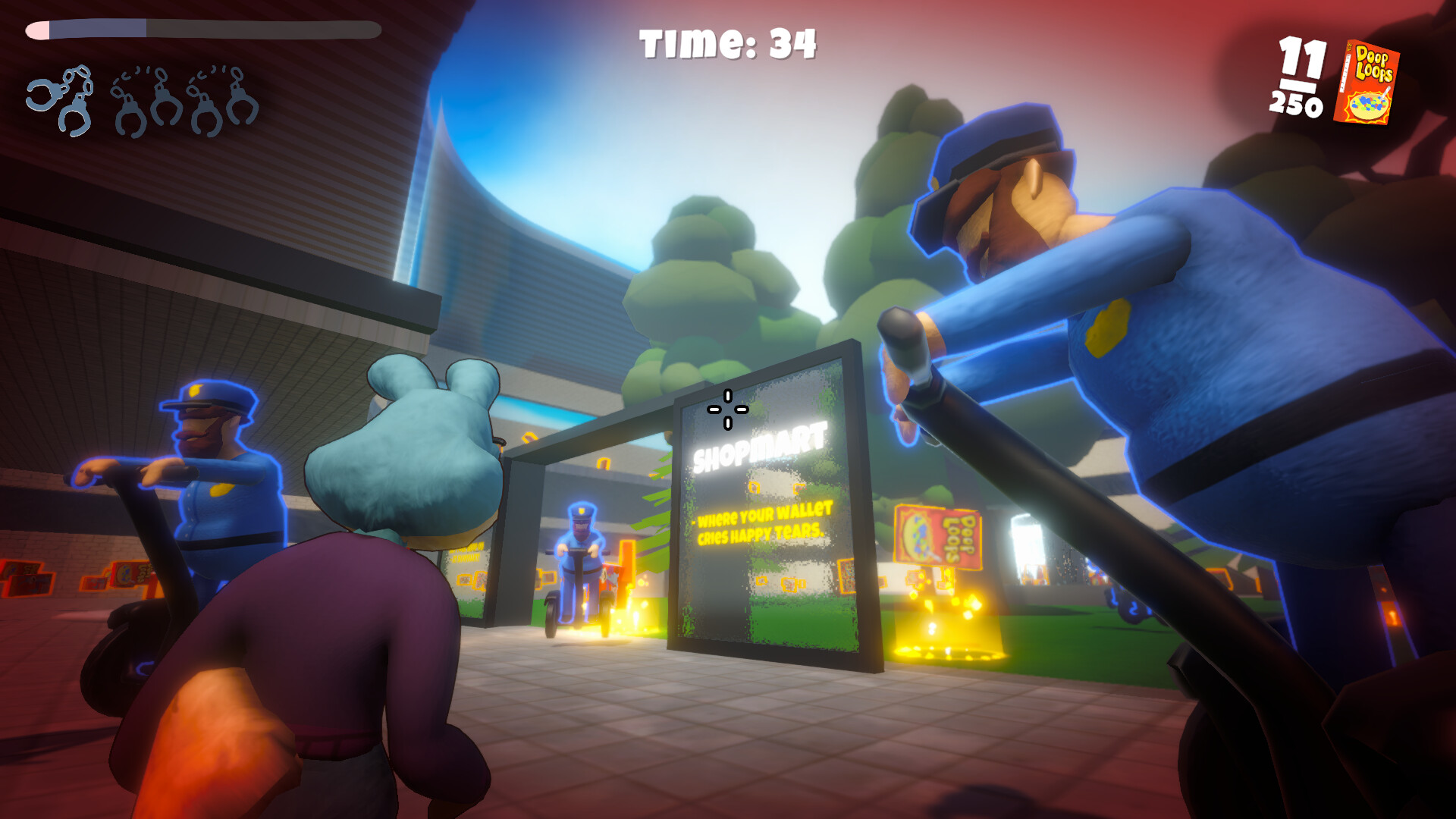 Race through colorful environments, dodge the clumsy but determined cops, and take on over‑the‑top boss fights in this fast‑paced arcade action game with a quirky story and addictive gameplay.