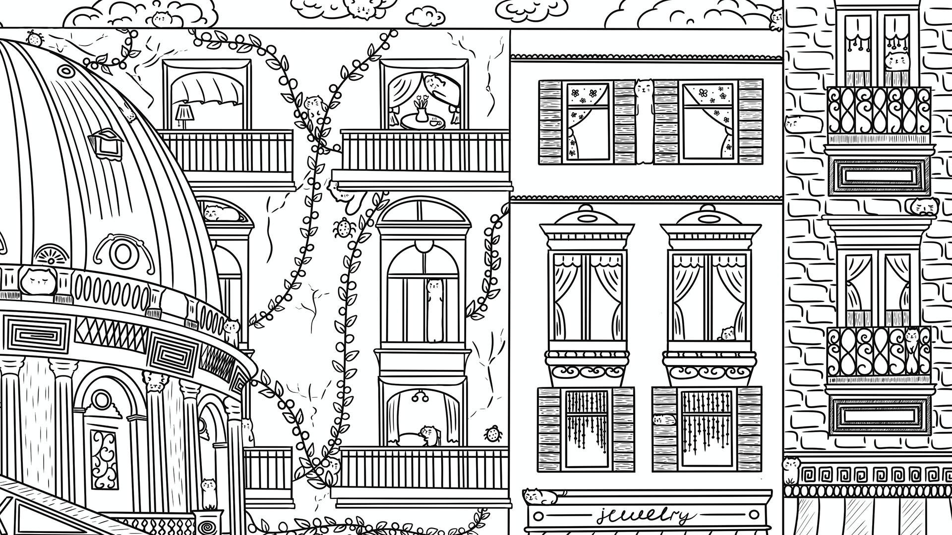 Lähde suloisimmalle seikkailulle maailmassa, joka on täynnä kissoja! Tutustu käsin piirrettyihin viehättäviin kuvituksiin erityisistä teemakohteista etsiessäsi 100 piilotettua suloista kissaa.