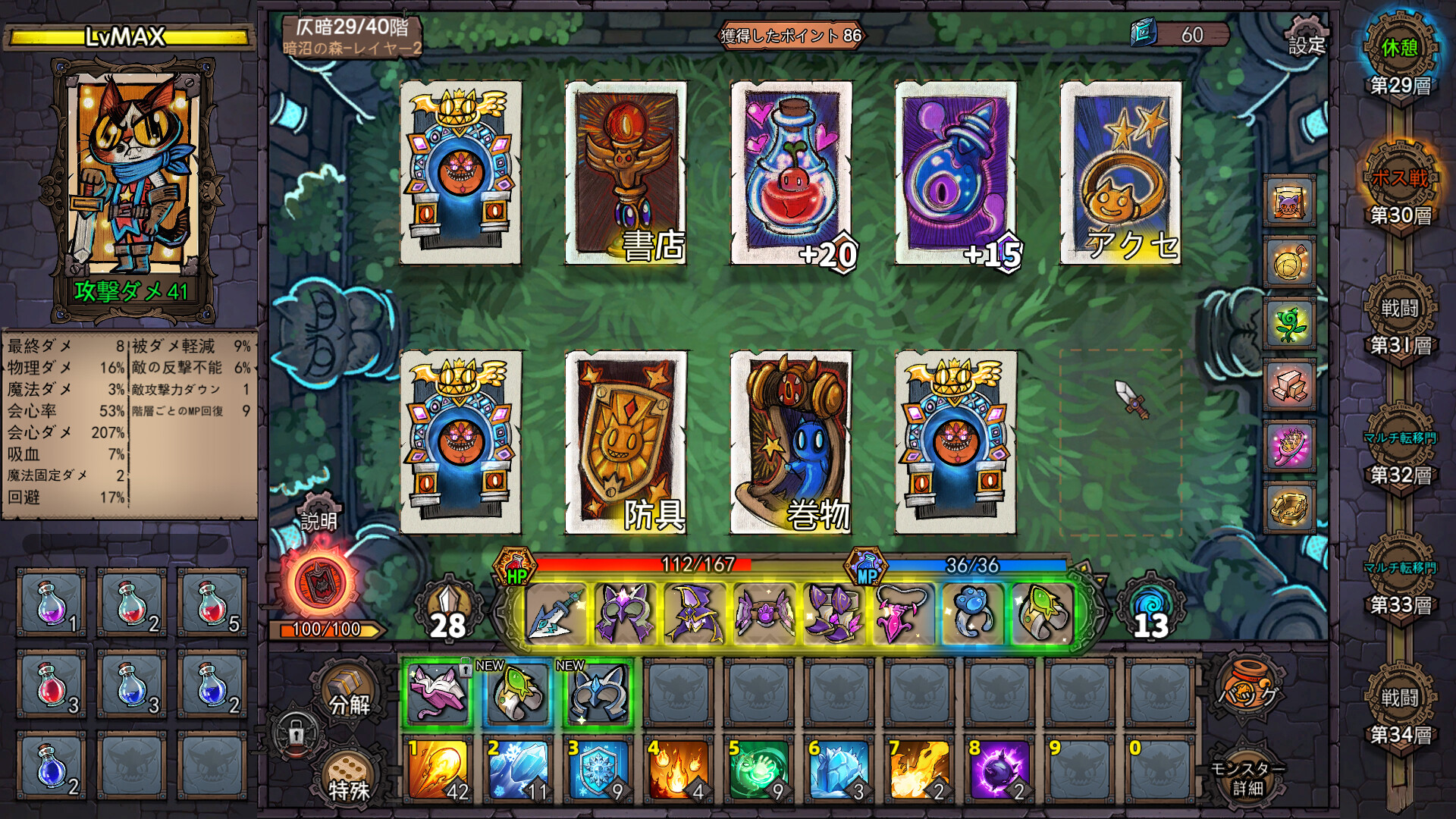レベル内の戦闘以外にも、様々なランダムイベント、未知の宝箱、謎の物資に遭遇します、どのように選択するかは、後の攻略に直接影響しますので、慎重に選択してください