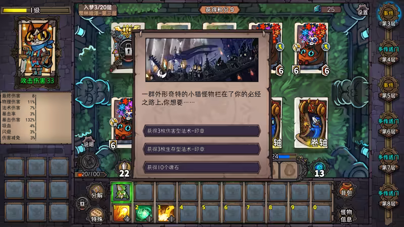 In addition to fighting in the level, you will also encounter a variety of random events, unknown treasure chests, mysterious supplies, how to choose, how to choose will directly affect the later strategy, please choose carefully.