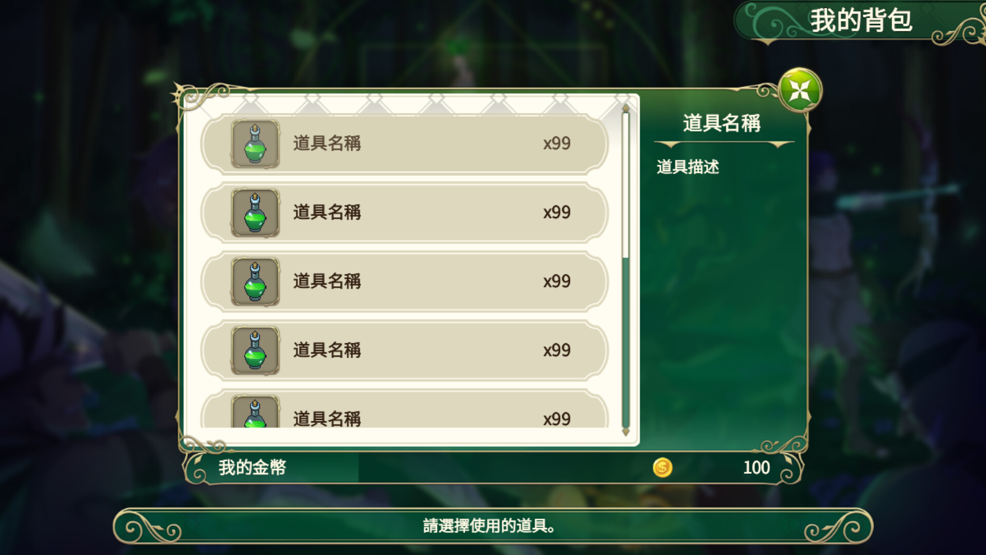 每個角色可以攜帶數個道具,可在世界設定中修改