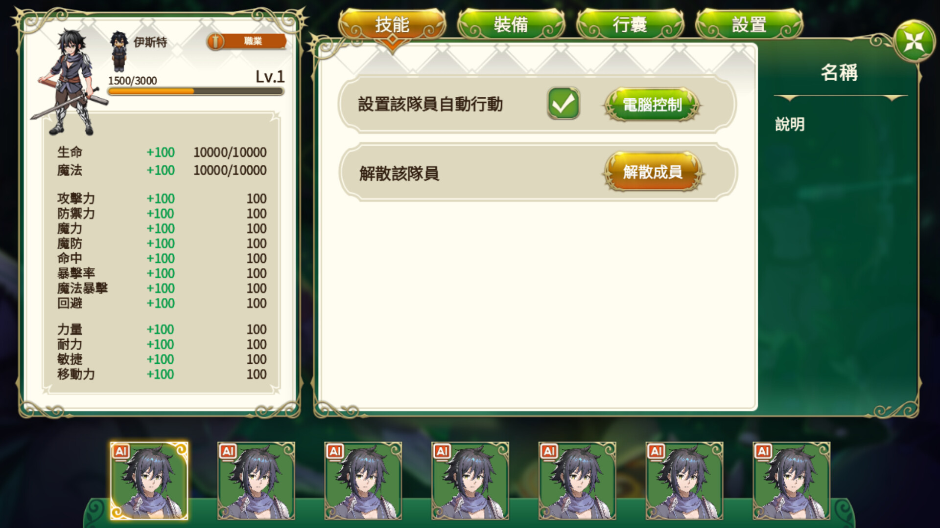 多角色養成與自由設定職業,允許設定可自由解散的隊員,允許將角色設定成電腦操控。