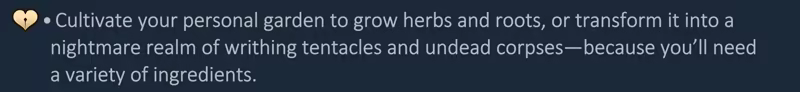 Visitors will come to you for advice or to buy potions to solve their problems. But will you choose to help them? After all, you can deceive or persuade your guests, steer them toward the light or the dark (depending on what benefits you the most), force them into servitude, or win them over with kindness. No one will judge you—this is your story! And not every healing potion will serve a noble purpose, nor will a tangle of tentacles always turn your guest into a true monster.