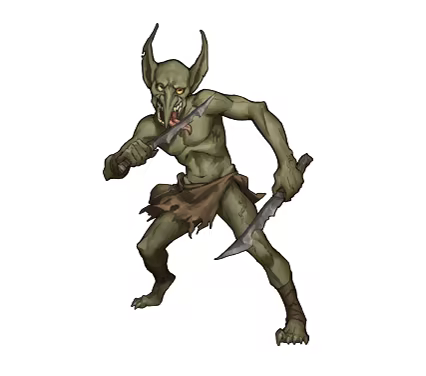 Goblins: Weak, humanoid monsters. However, you should not underestimate them due to their small size. When a leader emerges among them, a group of Goblins, each assigned a specific role, can become as terrifying as an entire army.