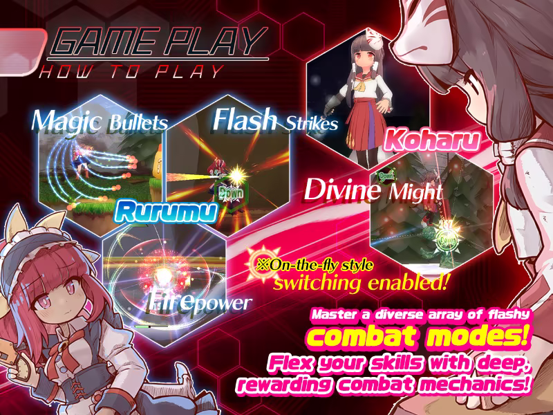 The characters can switch between different fighting styles that have respective features,