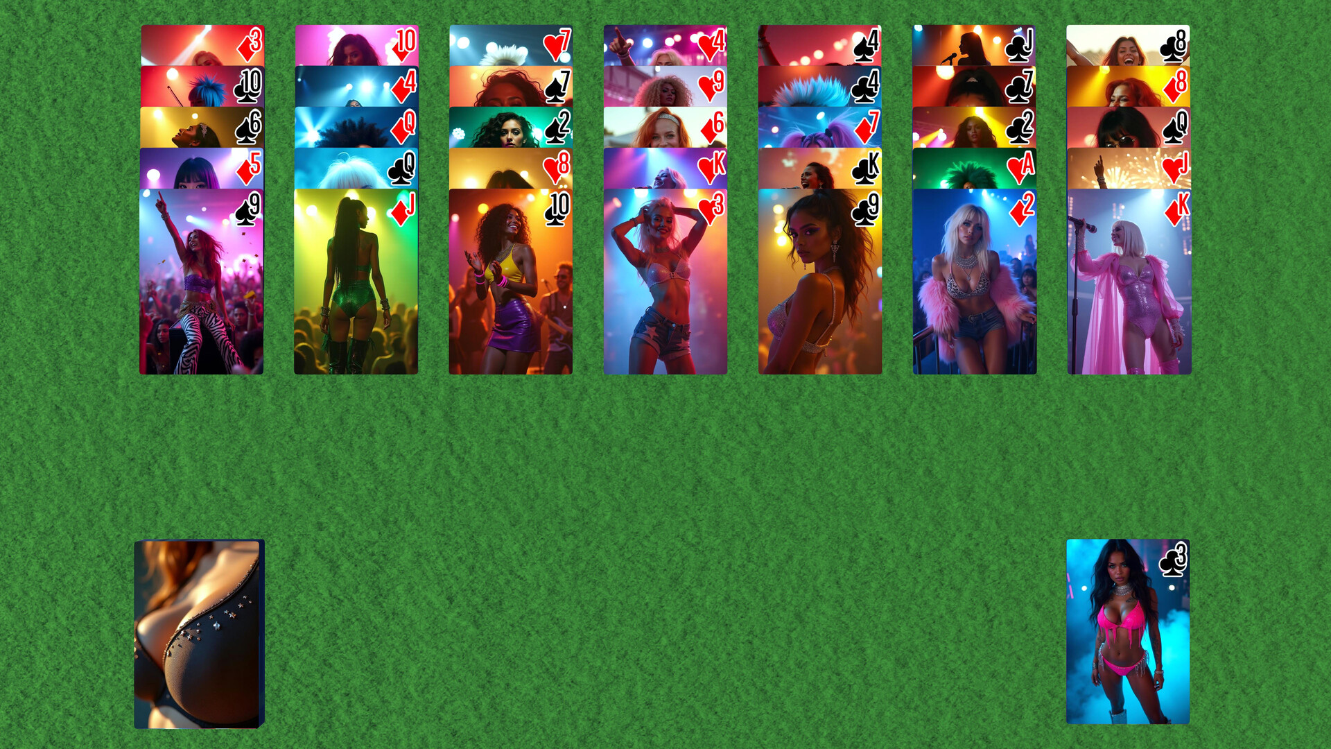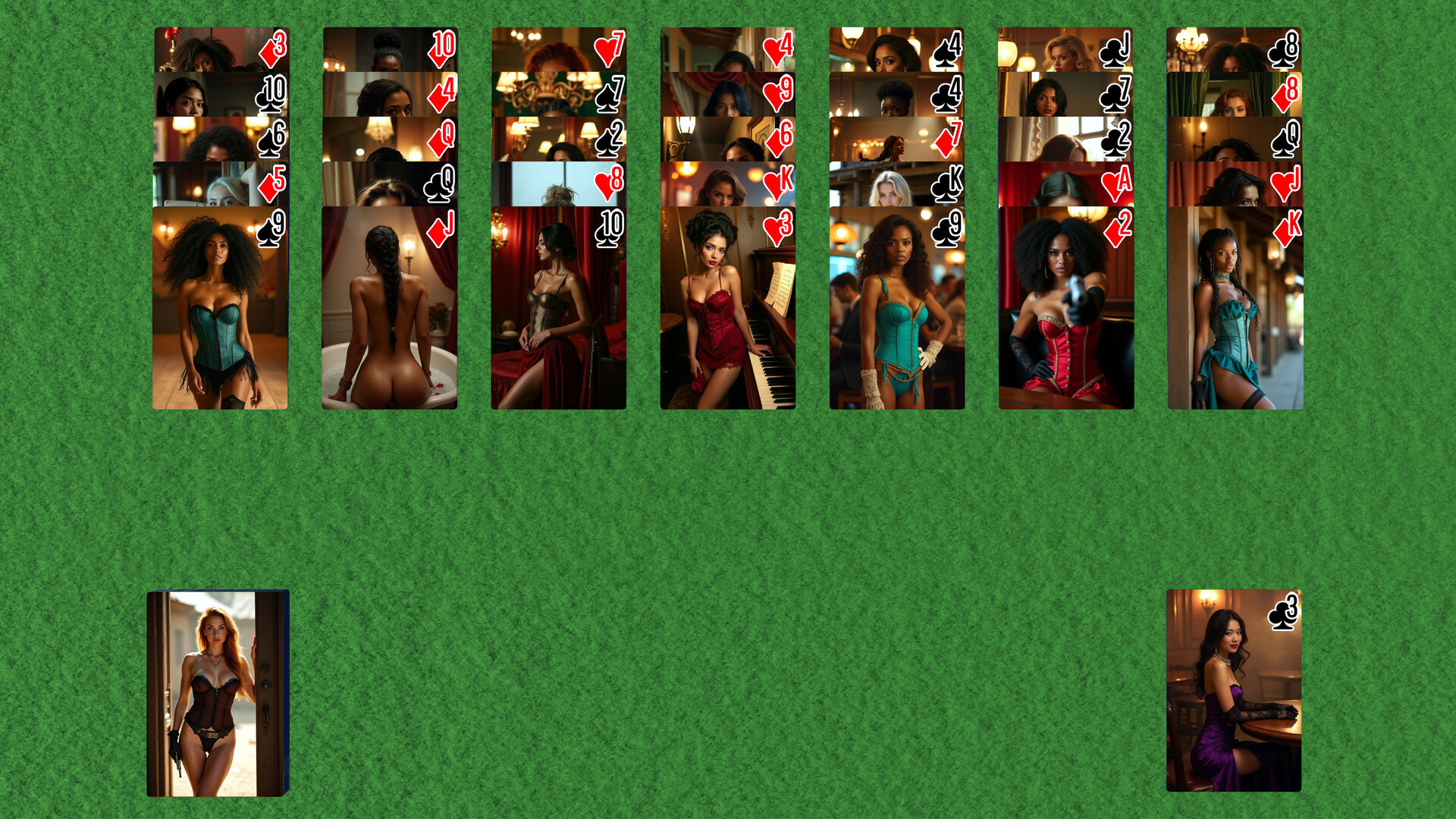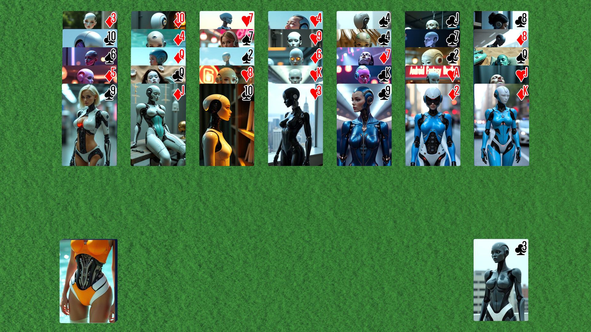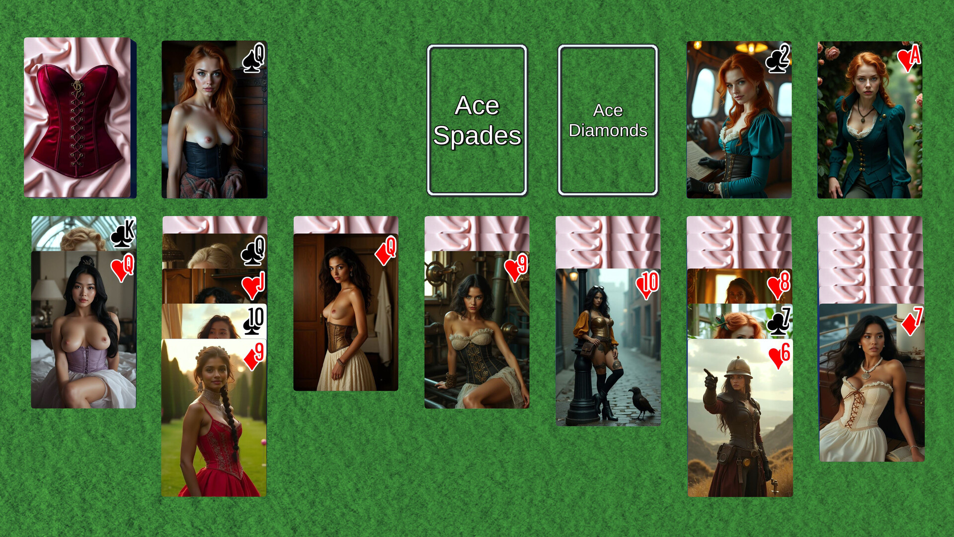 AI Solitaire is intended to be a celebration of AI Generated Art. The content of this DLC includes beautiful women rendered in a variety of artistic styles. The outfits and costumes can be revealing. Various art styles may feature exagerated proportions. Swimsuits and sexy clothing will always have a minimum of a Teen+ rating. Overly exagerated female proportions or wearing realistic lingerie will be rated Adult.
