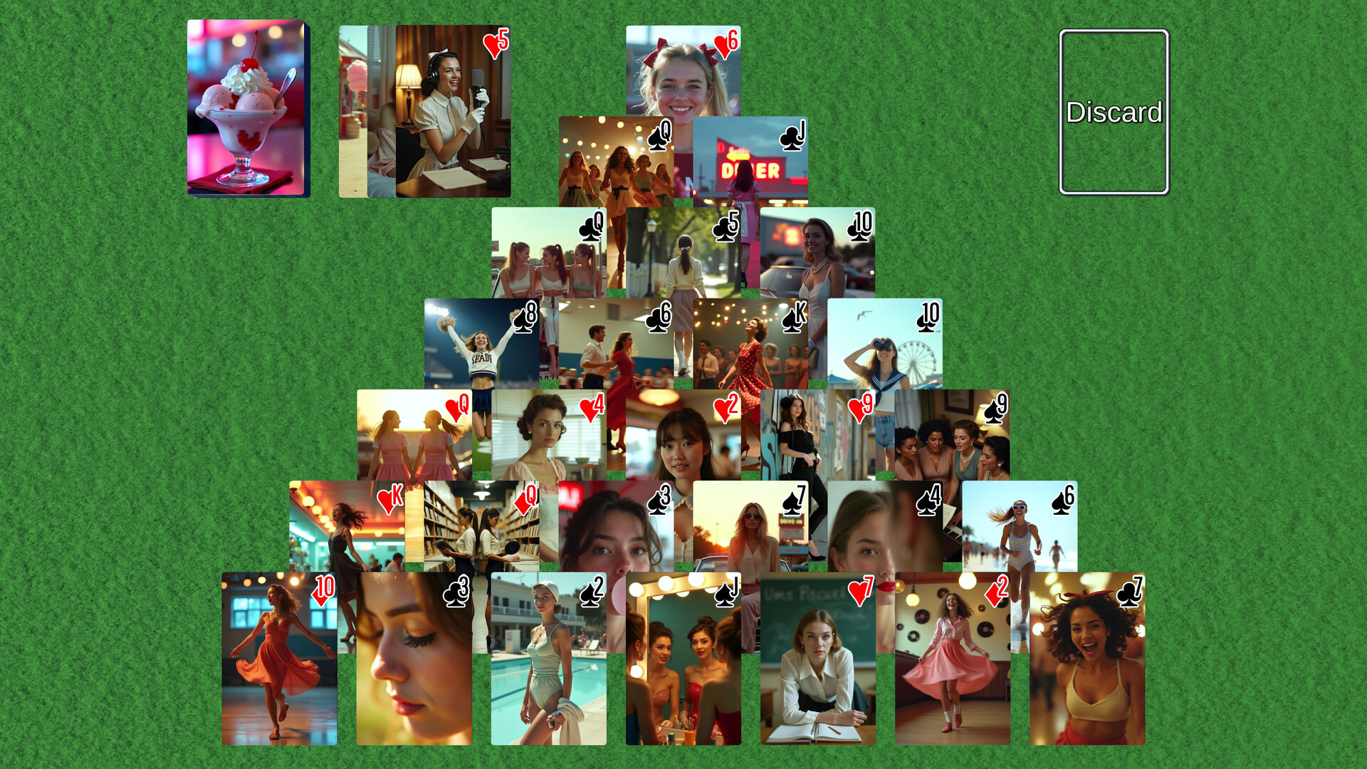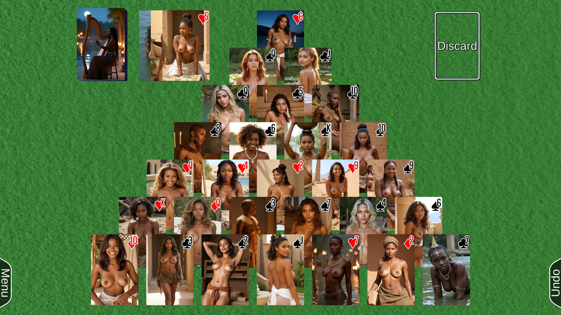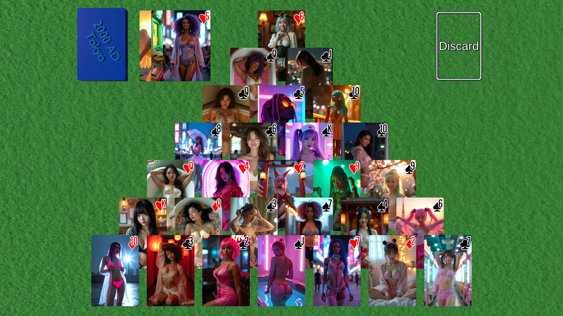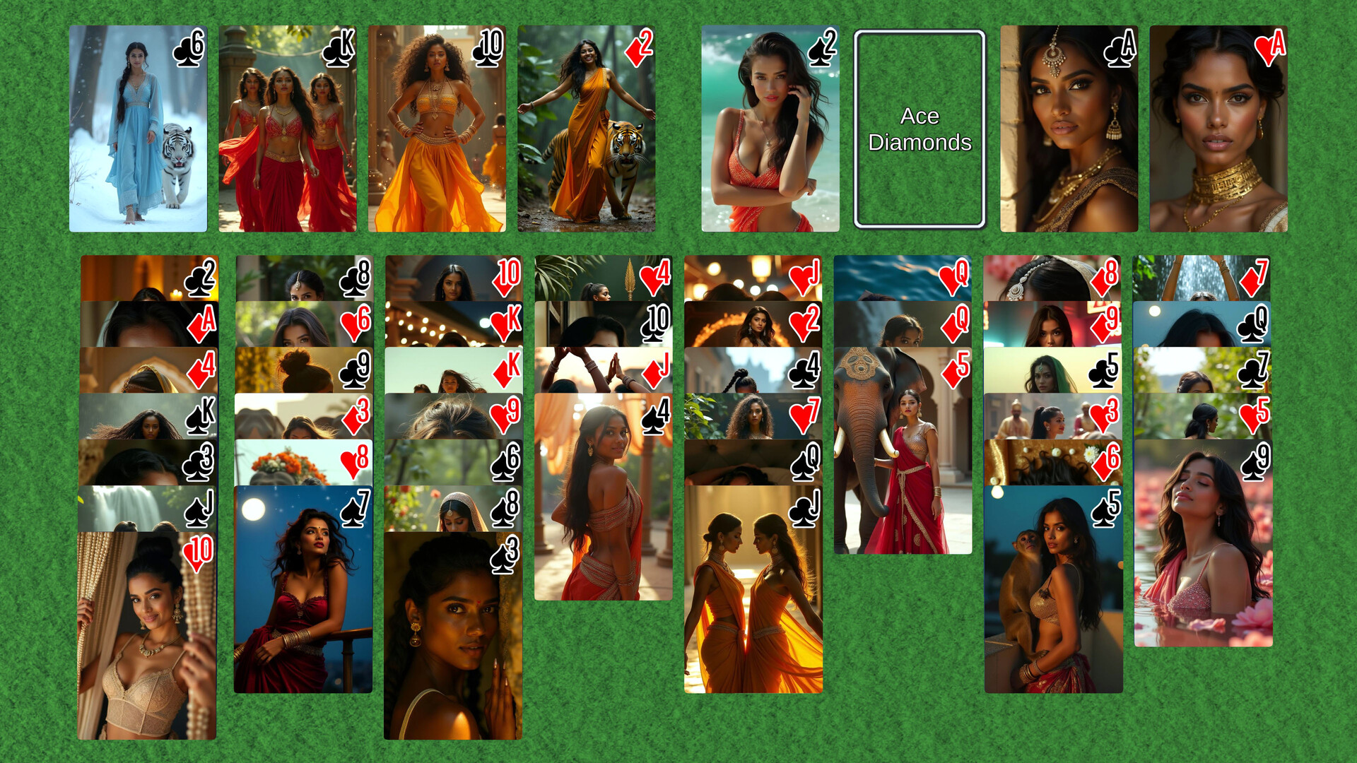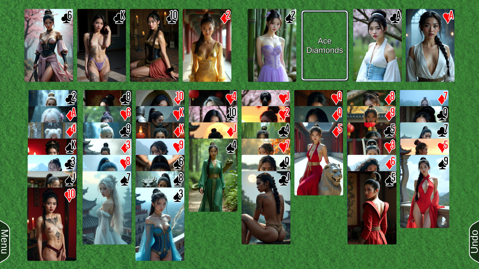 AI Solitaire is intended to be a celebration of AI Generated Art. The content of this DLC includes beautiful women rendered in a variety of artistic styles. The outfits and costumes can be revealing. Various art styles may feature exagerated proportions. Swimsuits and sexy clothing will always have a minimum of a Teen+ rating. Overly exagerated female proportions or wearing realistic lingerie will be rated Adult.