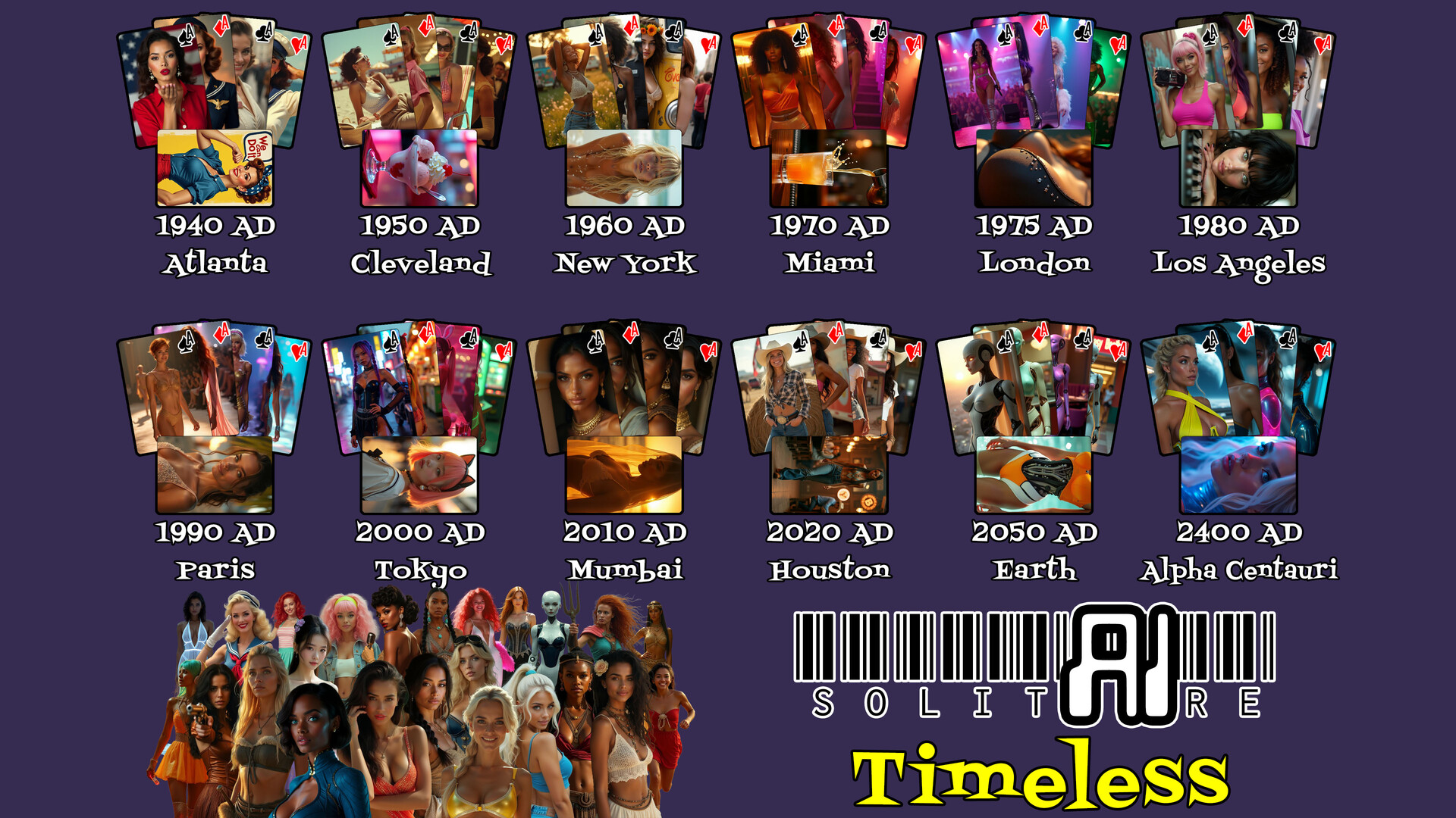 AI Solitaire - Timeless provides 24 new decks to use with AI Solitaire! This DLC is themed around the idea that beauty is timeless and celebrates beautiful girls from the ancient past all the way into the distant future!