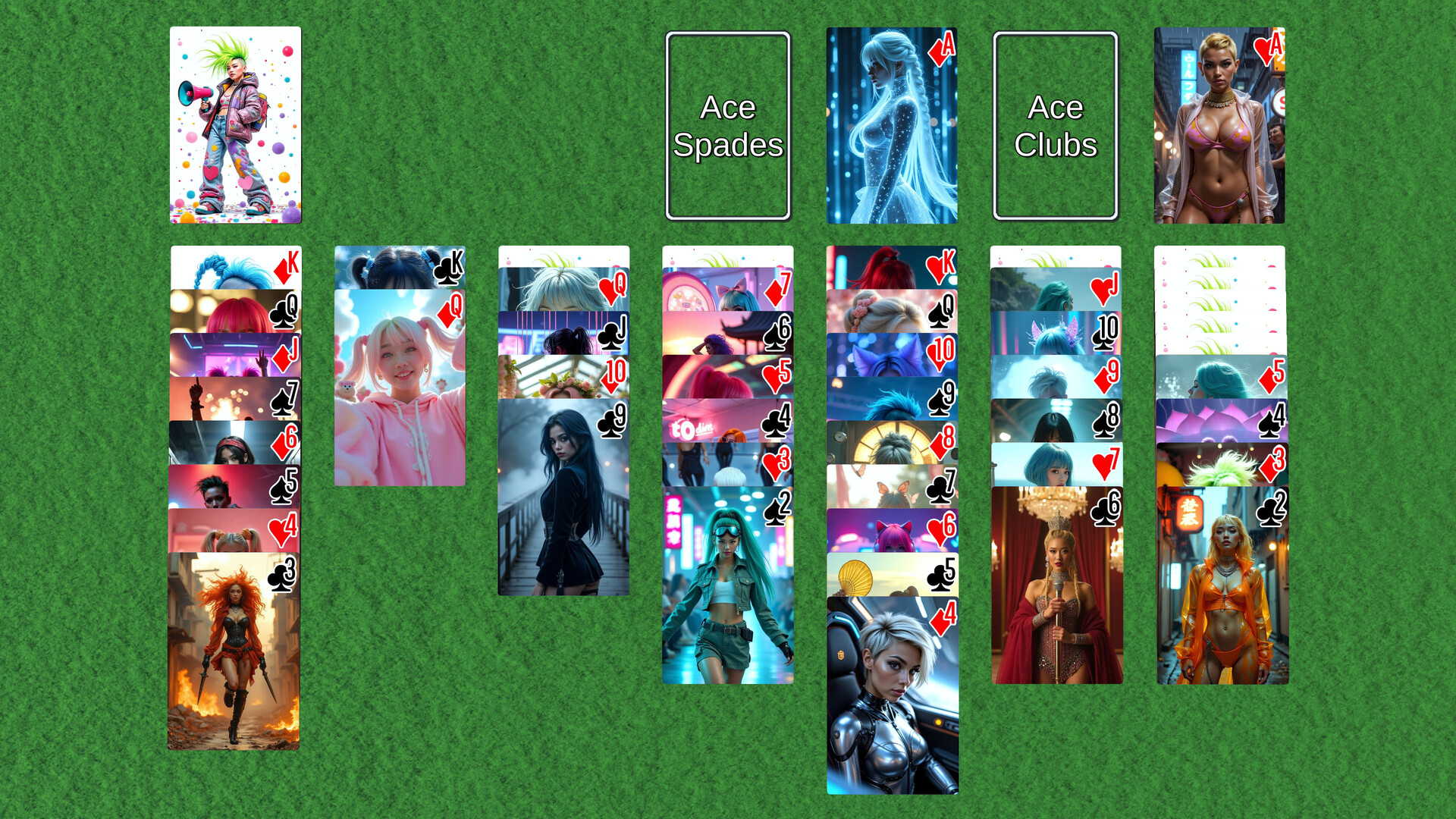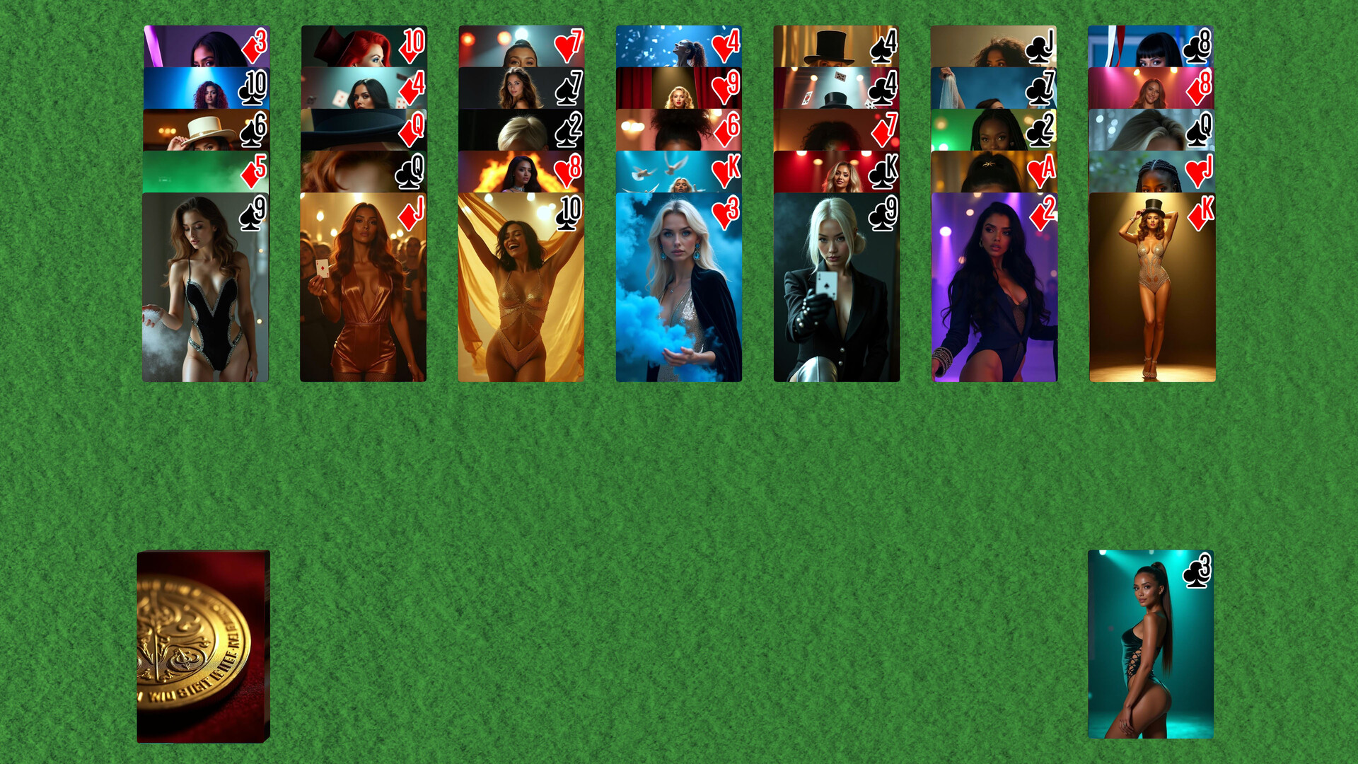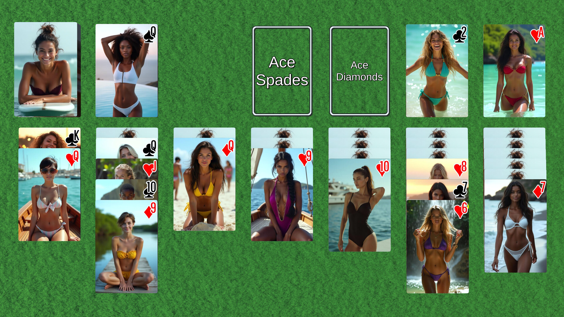 AI Solitaire is a celebration of AI Generated Art. All of the decks we include in this DLC were generated using Stable Diffusion. None of the images are based on actual people, and any resemblance to anyone living or dead is purely coincidental.