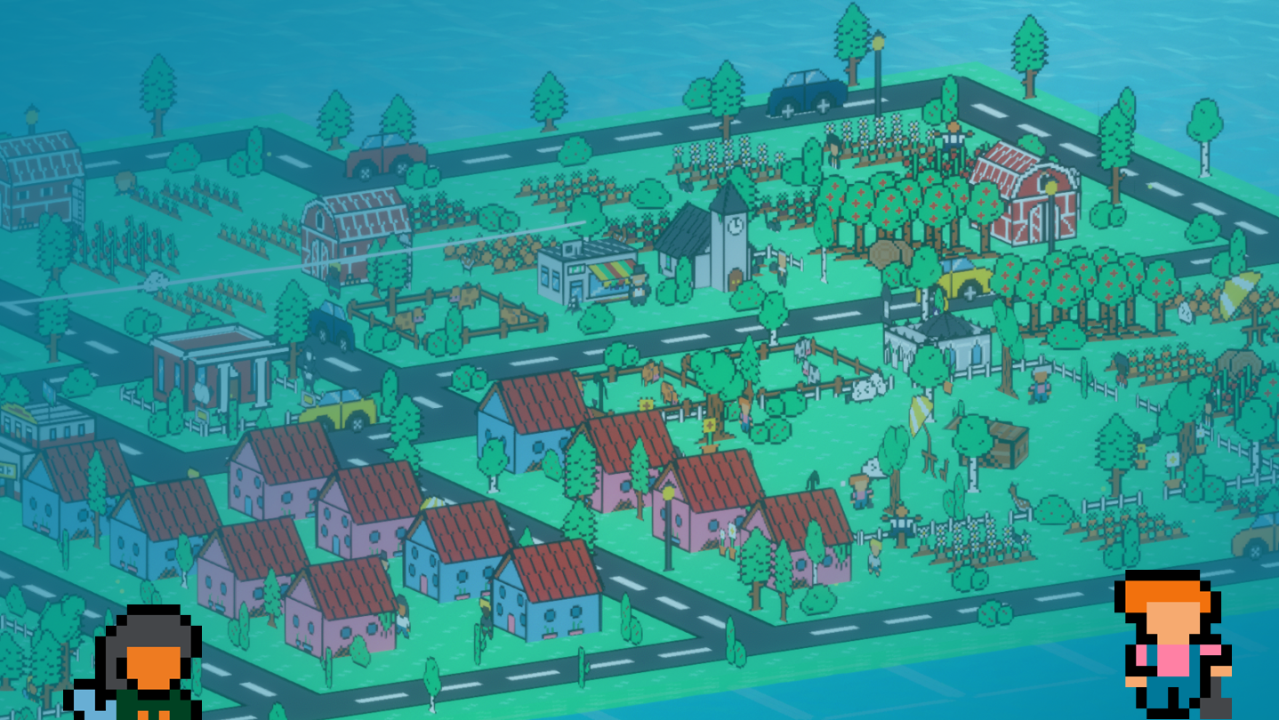 In Hamlet in a Pond you are creating a sanctuary for inhabitants of a 2D pixel art world in a 3D reality. And they bring with them their colourful houses, plants and animal friends.
