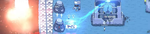 Freaking Meatbags throws you into a futuristic world where robots have jobs, cephalopods aren't confined to a single dimension, and humans pretty much just stand around talking to themselves. As a lowly cleaning robot, your task is to gather precious materials from each world before the solar system goes kaboom. As soon as you land, you realize this gig isn't going to be as simple as you had hoped. During the day you'll scramble to gather resources, build structures and keep your base in good repair. But when it gets dark, get ready to fight. Those rampaging wild robots aren't here to have a knitting competition.