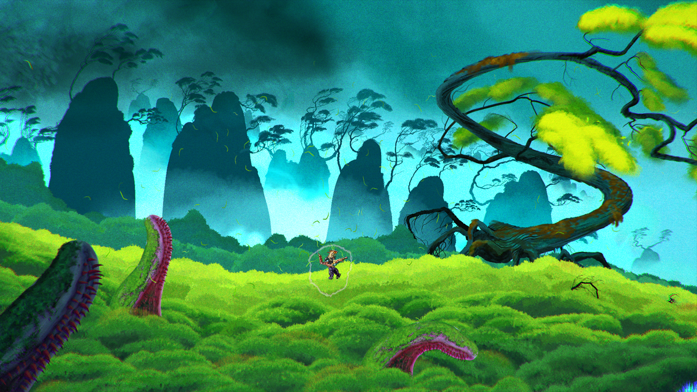 ChainStaff is a brutal action-platformer with a transforming spear and grappling hook, blazing weapon upgrades, and a rocking soundtrack. Aliens have attached to your head! Swing, shoot, and spear your way through mutating hordes and bone-shaking boss fights, and get this thing off your head!