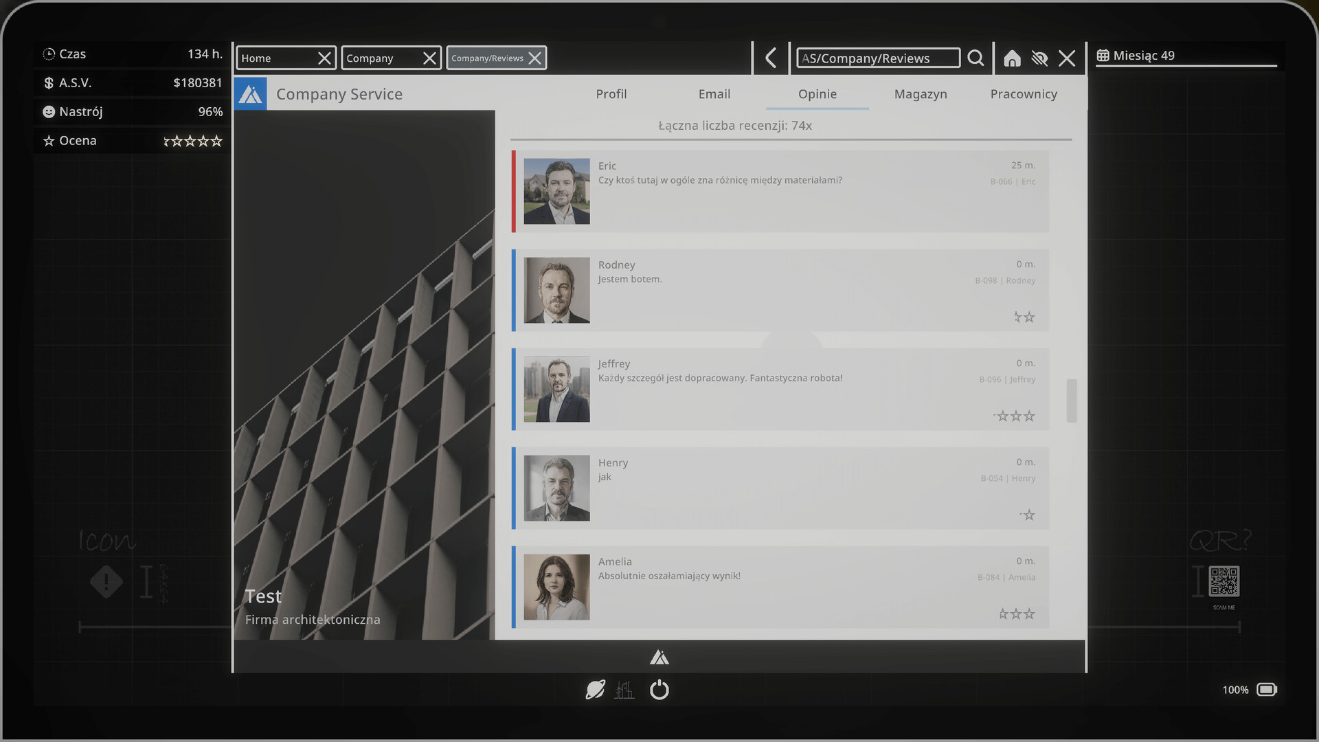 Zarządzaj własnym biurem architektonicznym! Wolisz zaprojektować jeden drapacz chmur, wiele domów mieszkalnych, a może wszystko naraz? Twórz budynki, upiększaj miasto, sprzedawaj działki, zarządzaj magazynem, zatrudniaj pracowników, kupuj nieruchomości i dbaj o swoje zdrowie.
