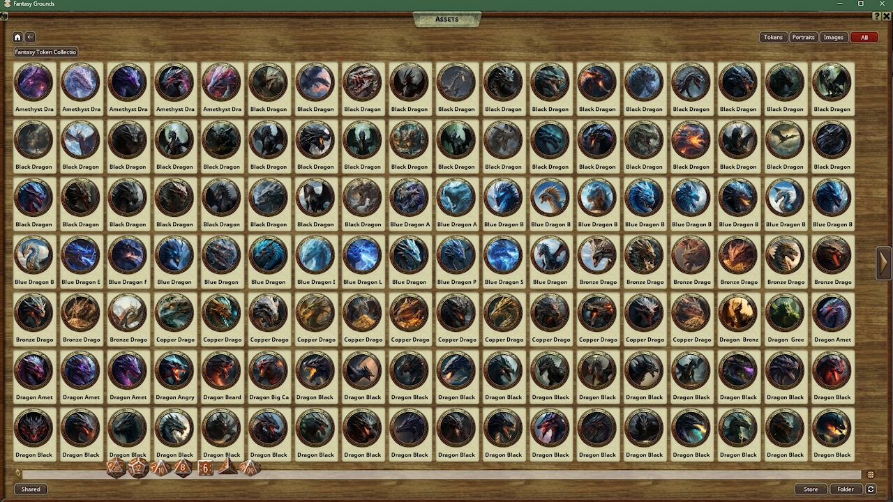 Ditch mundane tokens and populate your fantasy campaigns with amazingly-illustrated dragons using this token collection containing 500 unique designs. Chromatic and Metallic dragons of all colors are represented, and ready to hoard treasure in your campaigns!