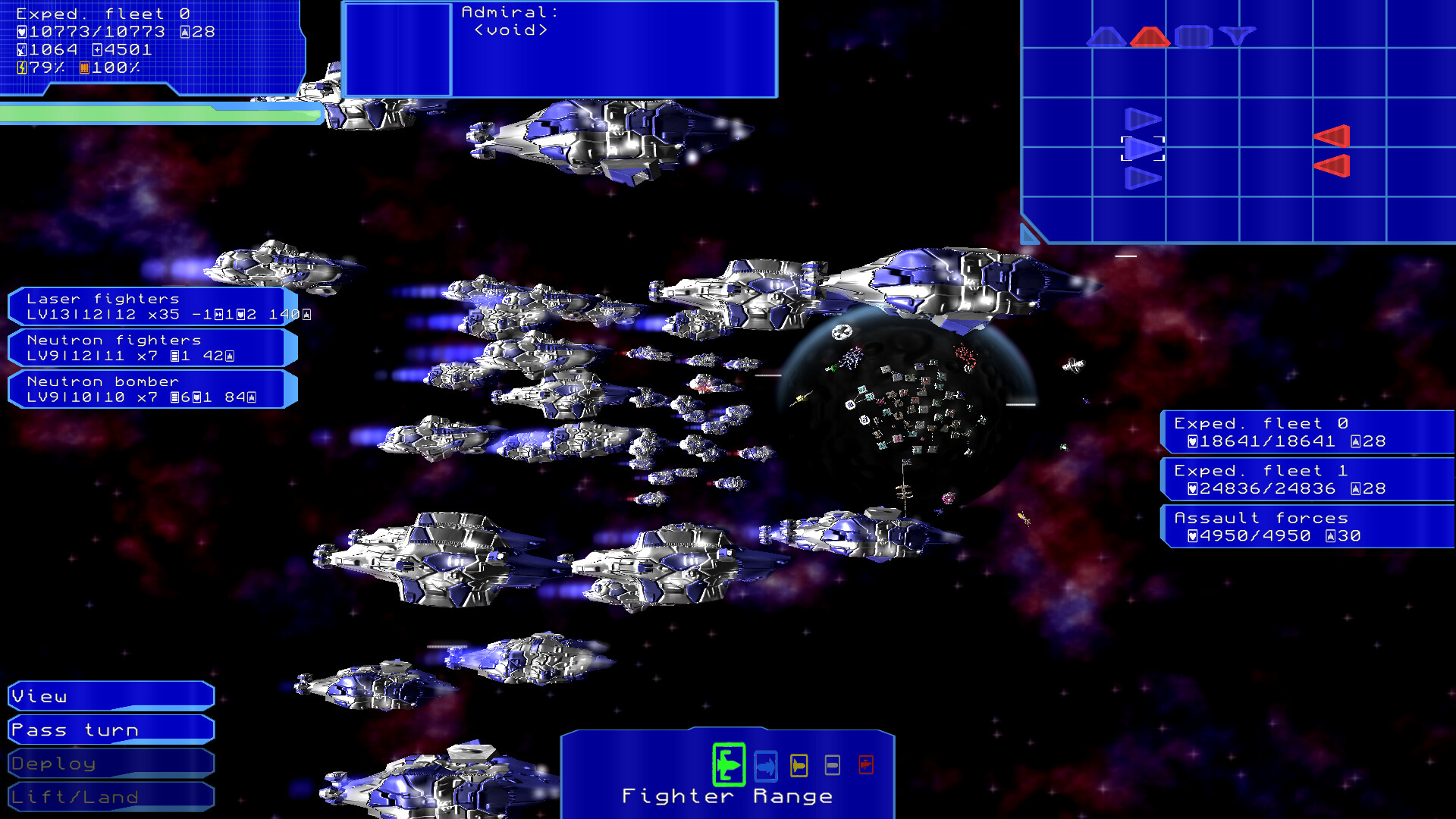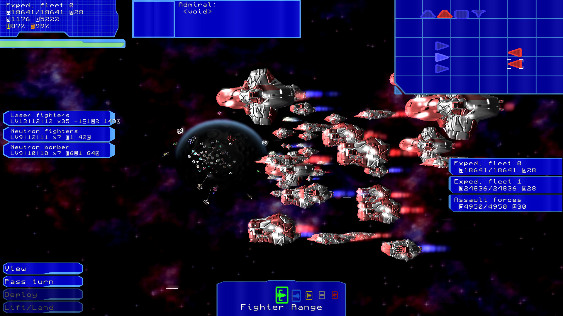In HARD VOID combat is turn-based, ships are grouped into fleets and commanded as a whole in large space battles.