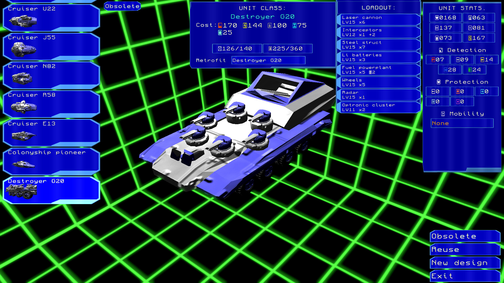 The combat system allows simultaneous participation of both space and ground forces: Fleets, orbital structures, planetary surface structure, land, air and sea units.