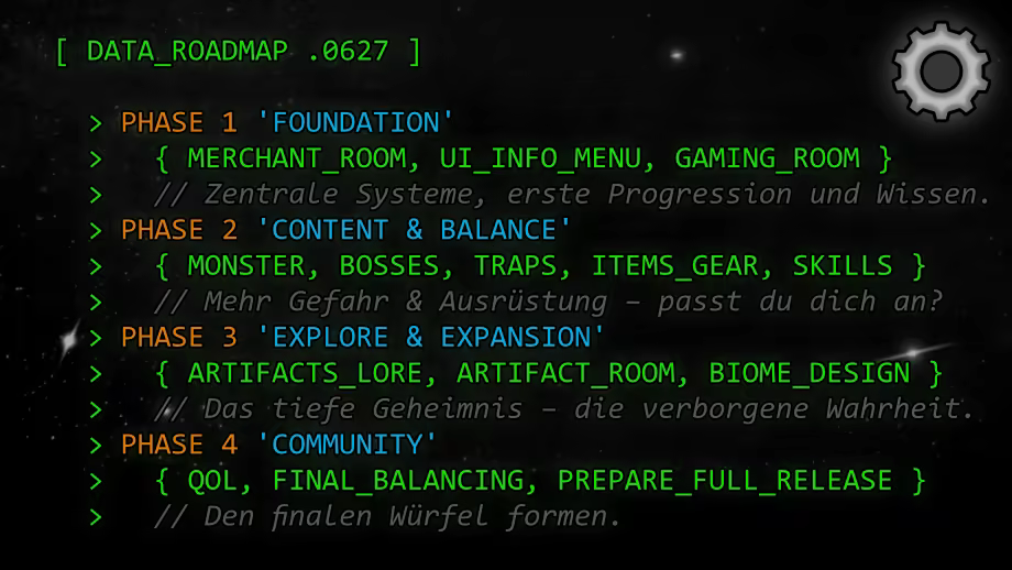 „Dieser Dungeon Crawler ist aufgrund seiner neuartigen Dungeon verändernden Raumkarten Mechanik und dem prozedural generierten Dungeon Würfel Aufbau, einzigartig in diesem Genre. Um diese Idee in einer Vollversion zu perfektionieren, ist es wichtig viel Feedback zu erhalten. Die Spieler können so helfen, noch eigene Ideen vorzuschlagen, welche bei der Entwicklung noch berücksichtigt werden können. Da der eigentliche Spielablauf bereits reibungslos funktioniert und es schon viele Interessierte gibt, fiel die Entscheidung für eine Early Access Version einfach.“