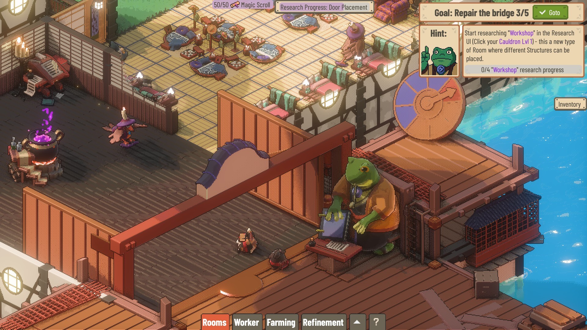 • Build & expand a spirit resort: place buildings, connect areas, and restore spirit-shrines.