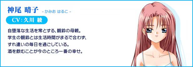 「親子の愛」をテーマに登場人物達の繊細な心情を描いた感動作を、最新のビジュアルノベルエンジンでお楽しみください!