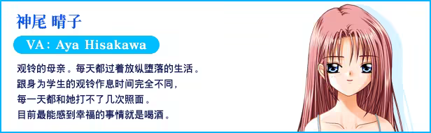 敬请使用最先进的视觉小说引擎,来体验这部以“亲子之爱”为主题,细腻描绘了人物内心的感人之作!