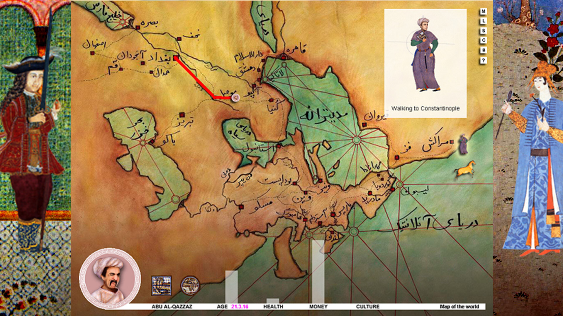 Abu Al-Qazzaz is the main character in Spice Trade. He is a poor young man from Baghdad, who has inherited a house and some land.. oh, and he wants to get married too.
