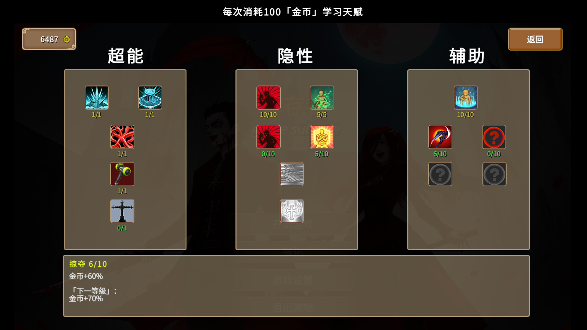全局天赋不会因为重启游戏而重置,通过每次游戏获得的金币来强化天赋。
