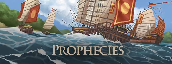If any Kingdom cards have the Omen type, one Prophecy is included in the game. Prophecies are rules that can eventually apply to the game.