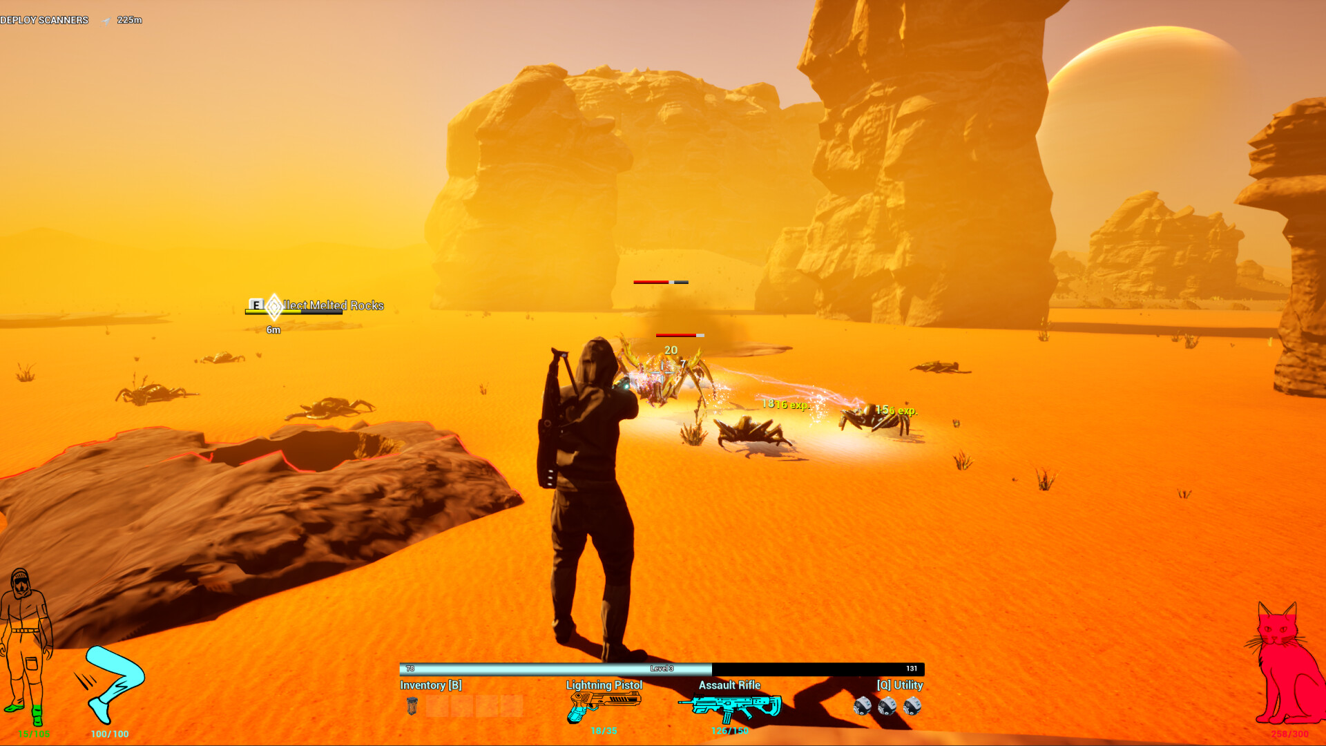Starving Cat is a third person sci-fi shooter where you explore planets and fight monsters to find food for scientist cat Simon.