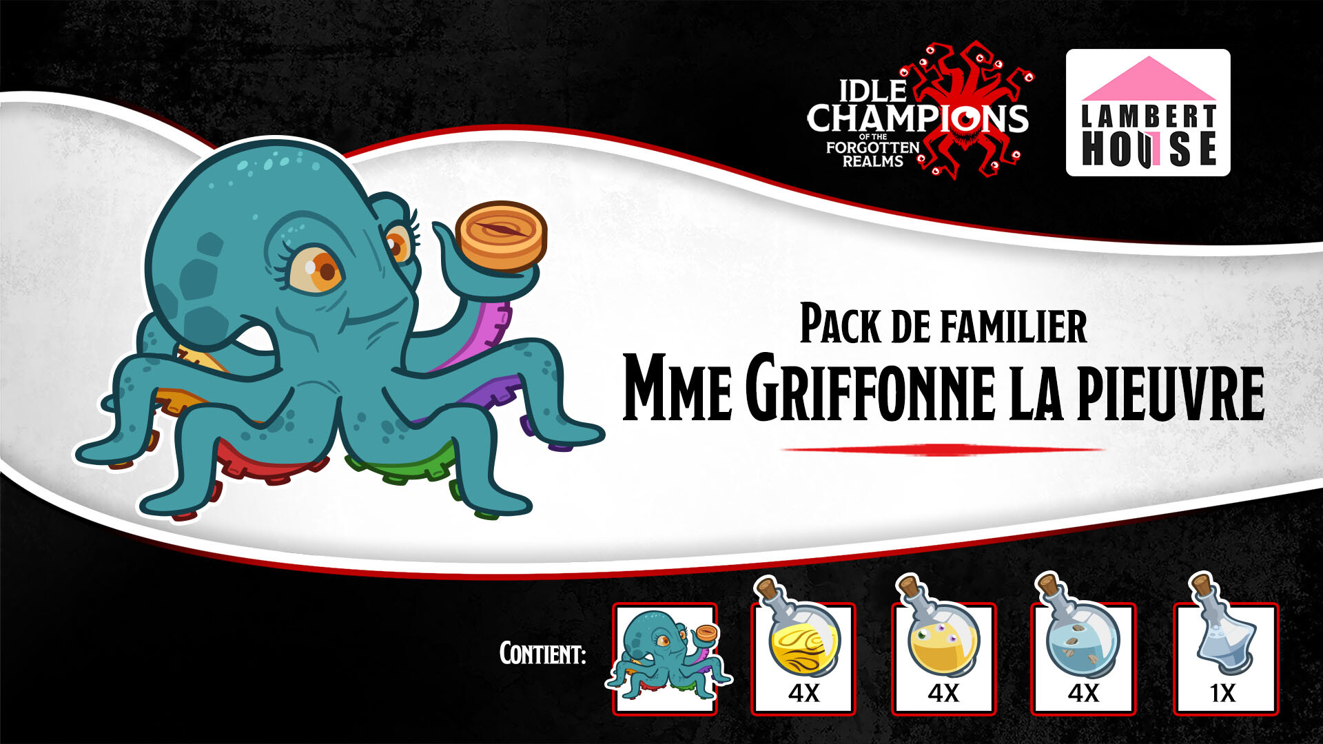 Remarque : Pack de familier Mme Griffonne la pieuvre n'est plus disponible sur le magasin Steam.