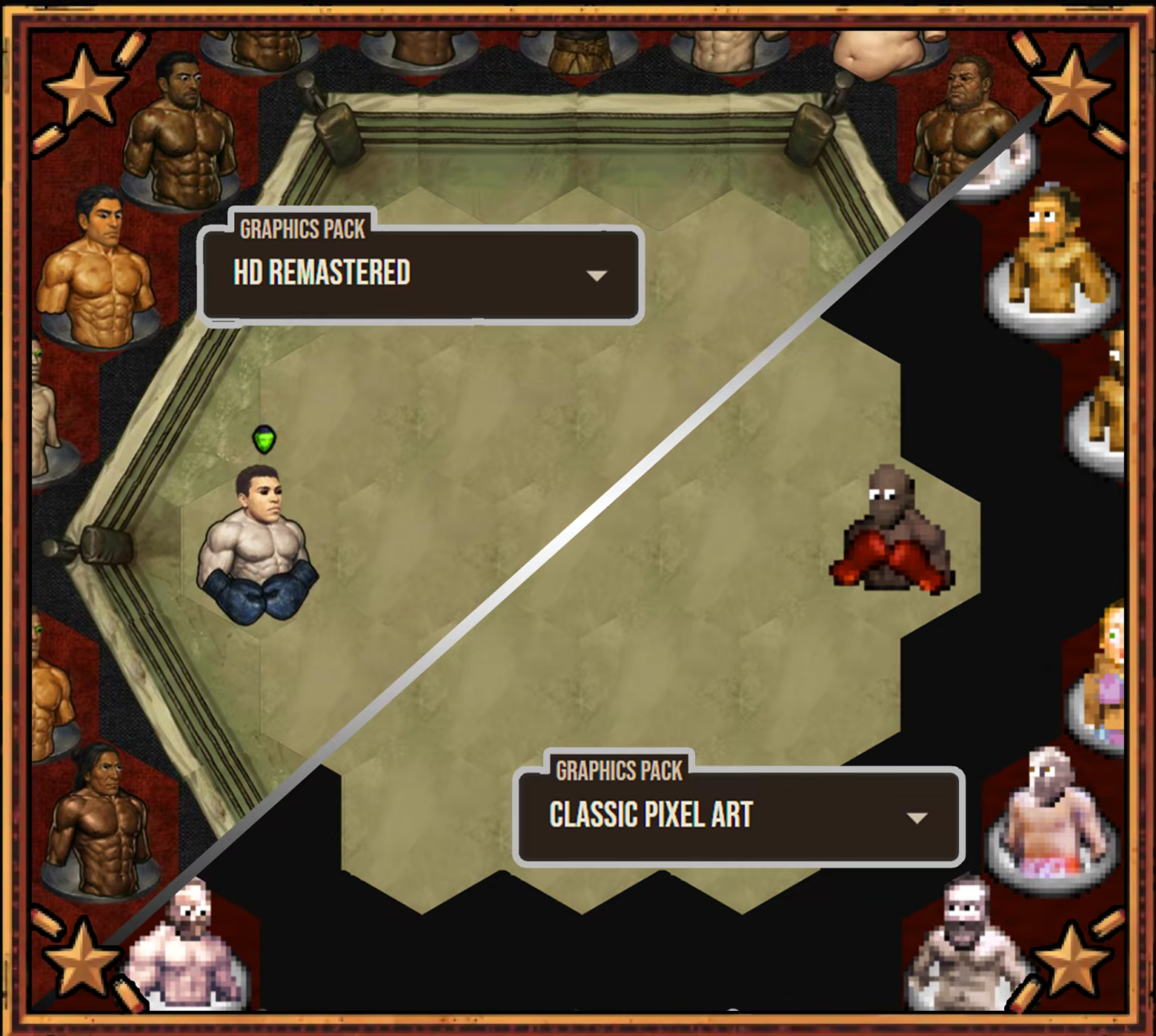 A tactical turn-based boxing simulation with (optional auto-battle) and perma-death. From your backyard to a world title. Recruit Boxers, Assign Perks, Train Stats, Build Synergies, Manage Injuries, Unlock strategies, Upgrade your Gym, Bribe the Commission and create roster of Boxing Champions.