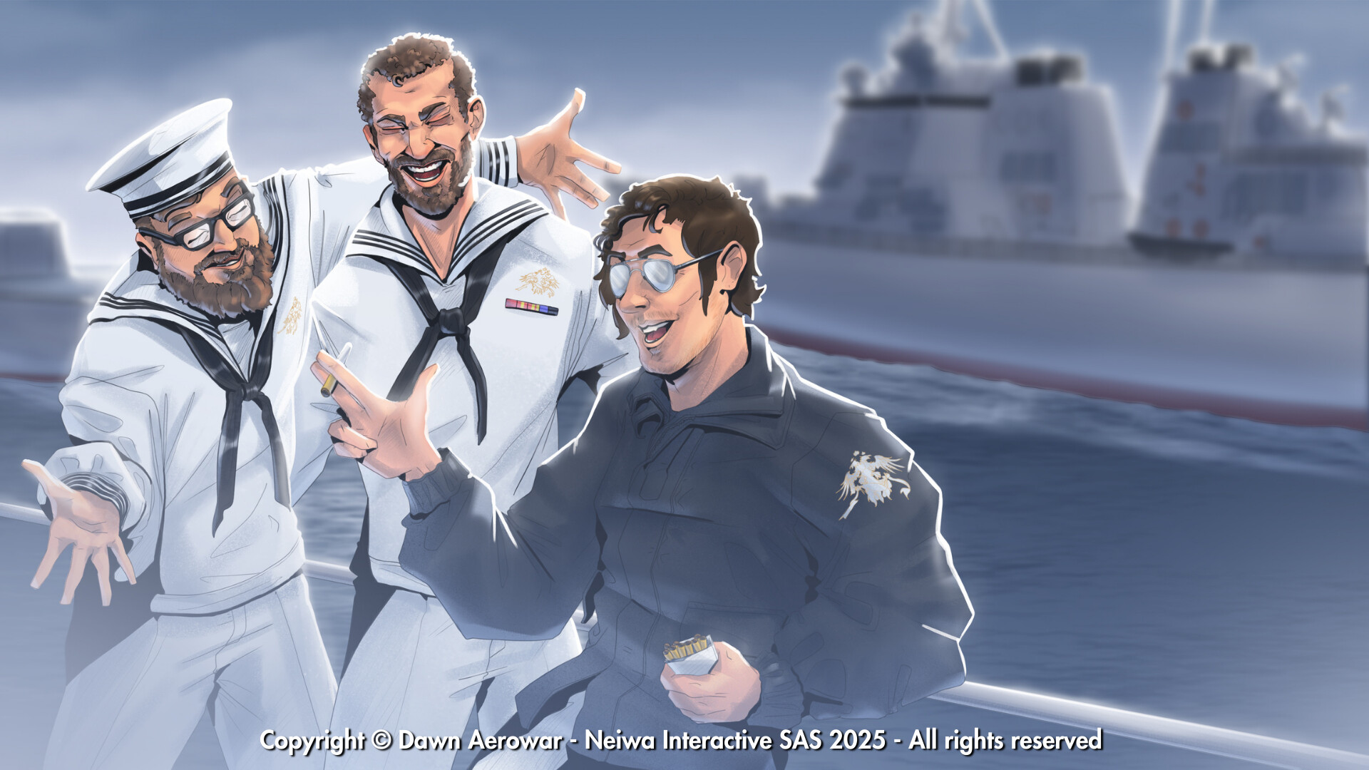 Dawn: Aerowar is an "animated audioplay" that uses 3D animation, 2D art, and an audioplay story that depicts the story of one final mission for a fighter pilot driven by revenge against an Empire that took everything from him.