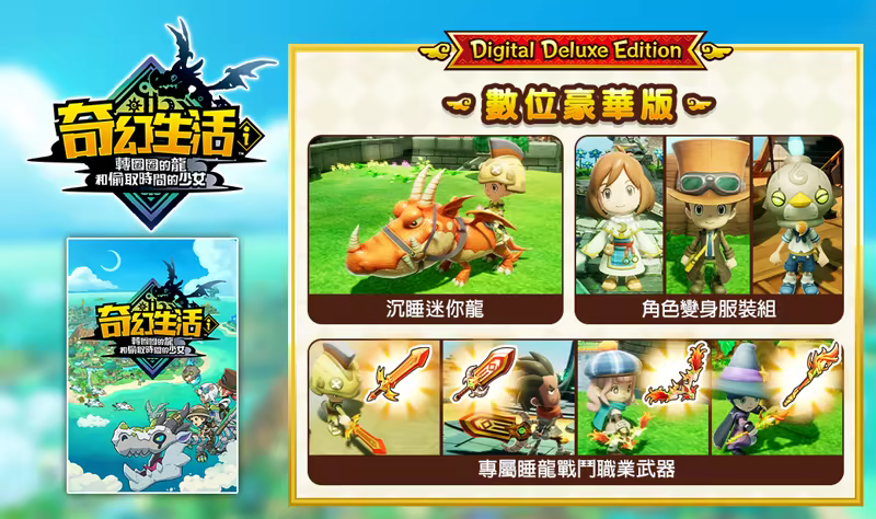 本產品包含《奇幻生活i 轉圈圈的龍和偷取時間的少女》完整遊戲與下列道具: