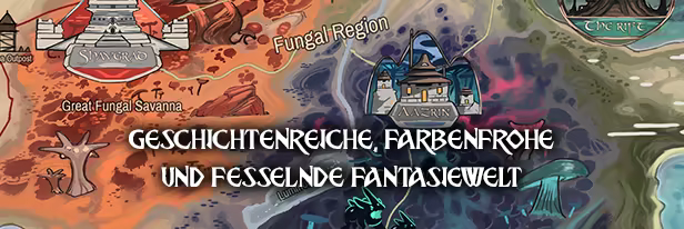Erkunde Lyboria, eine handgefertigte mittelalterliche High-Fantasy-Welt. Dieses lebendige Reich erstreckt sich über vielfältige Biome – von pilzartigen Savannen bis zu eisigen Bergen – und ist reich an Mythen, Chroniken und Geschichten. Die Welt sprüht vor Farben und Leben, bleibt jedoch durch reife Themen, verwoben in den Bildern und Geschichten der Charaktere, geerdet.