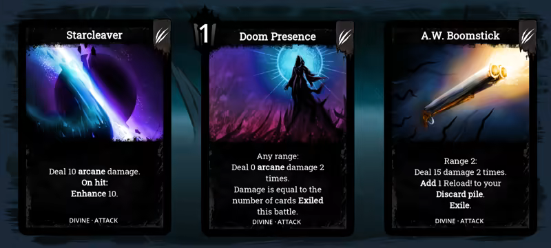 You will face five different aspects of the Pale Gods. Each aspect has unique foes, mechanics, and card rewards. Shape your deck, discover game breaking combinations, and awaken your true potential. No run is the same!