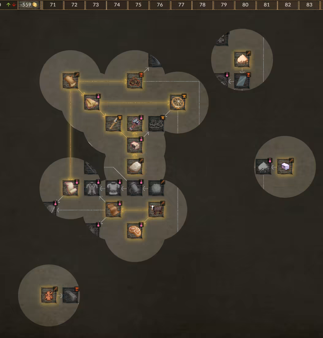 Choose wisely which materials to gather and which to buy. What could be better than discovering a coal mine when your economy is focused on blacksmithing when steel prices are rising?