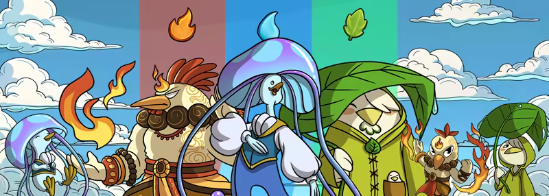 With 300+ unique cards, you’ll hatch and evolve each chicken from Egg to Chick to mighty Megachicken, maximizing stats and abilities along the way. Each chicken comes in Fire, Water, or Grass types, and clever combinations of types will let you unlock powerful strategies for every encounter.
