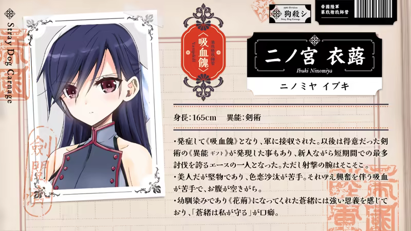 通称〈狗殺し─ストレイドッグカーネイジ─〉として闘う。