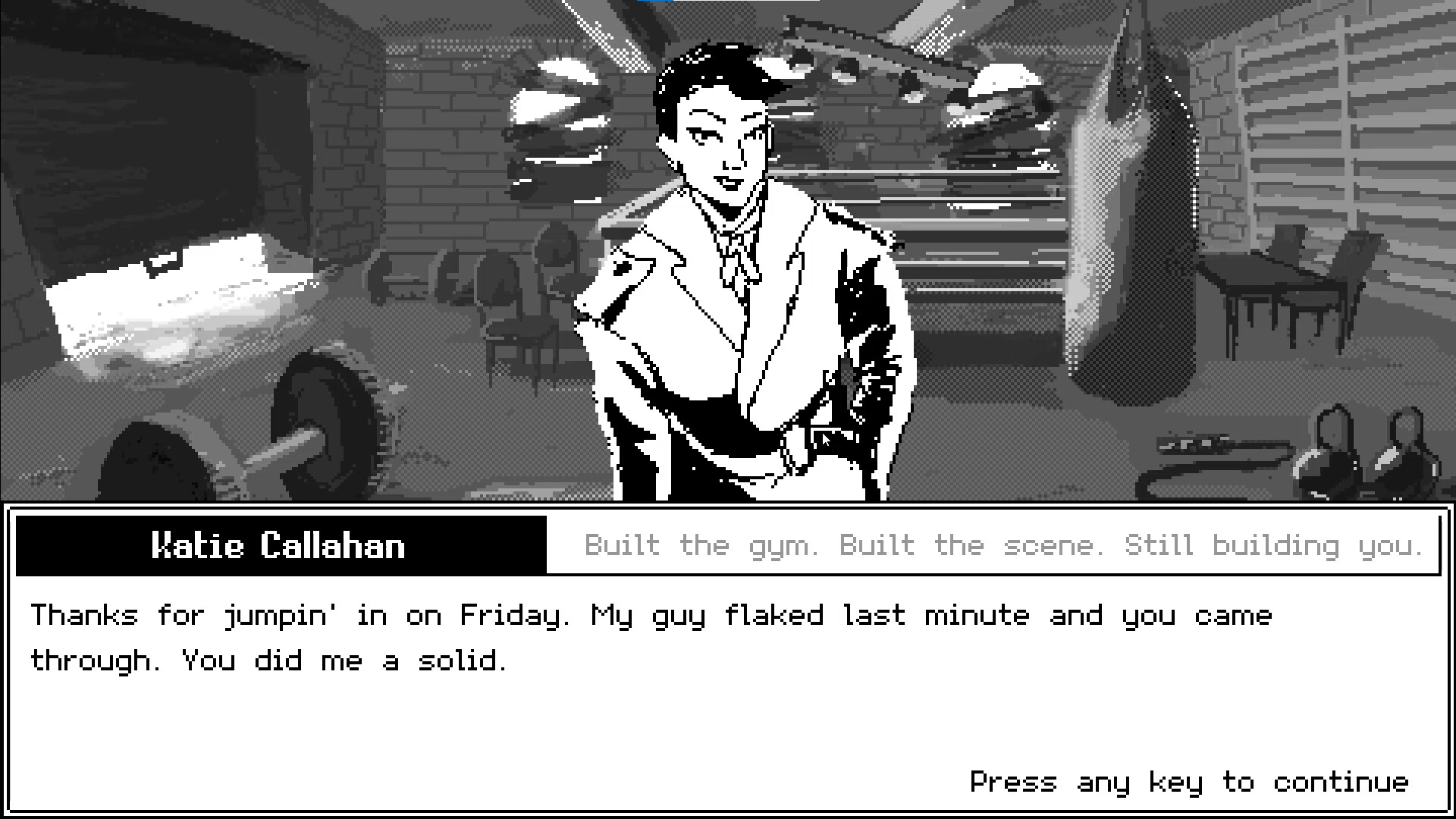 You begin the story working at Callahan's Gym that quickly started gaining popularity in Brickton since it started hosting boxing matches. As the story progresses you will discover many other locations and characters in this tiny ghost town.