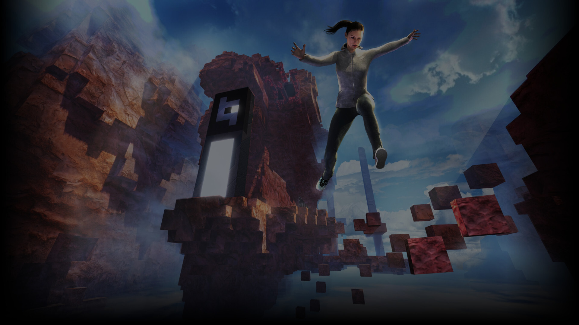 Immersive first-person parkour in a surreal, physics-driven voxel world. Every move can modify the environment. Surfaces pop in and out of existence at will.