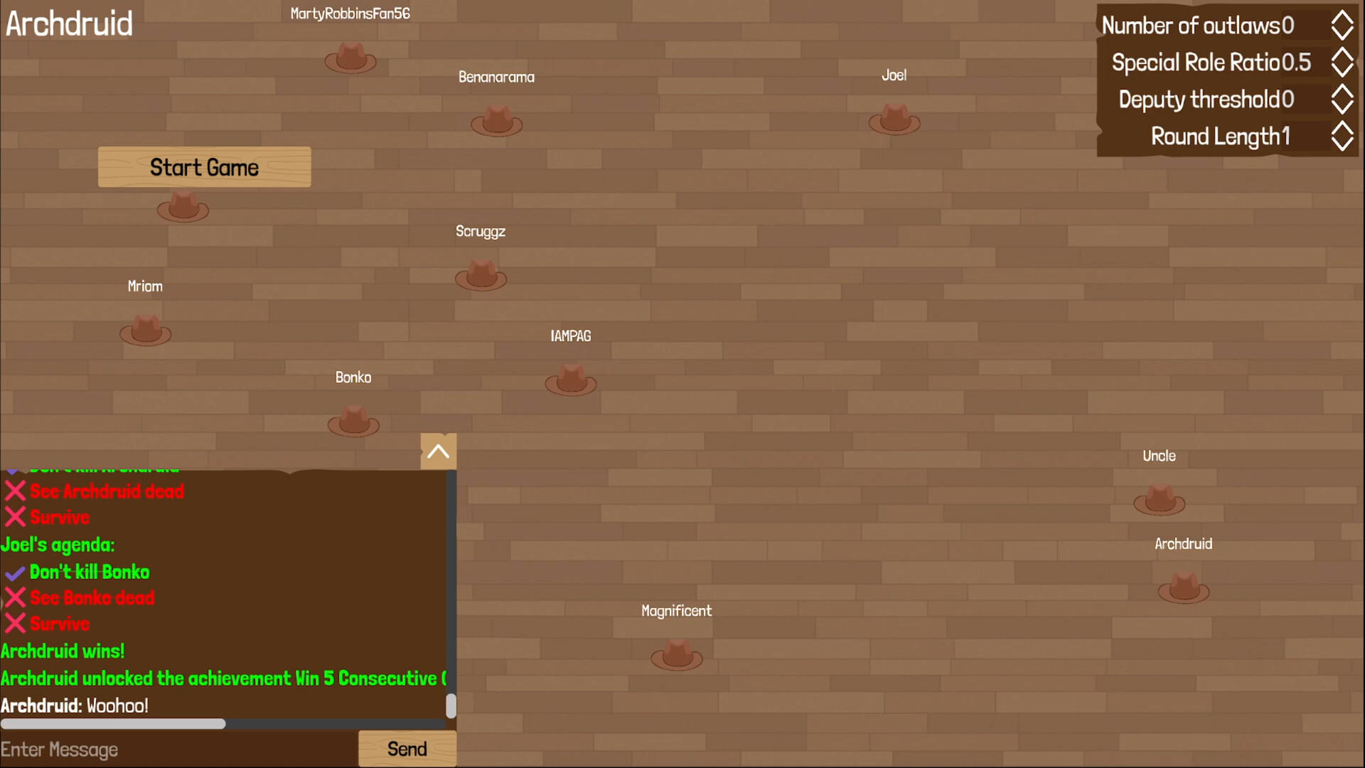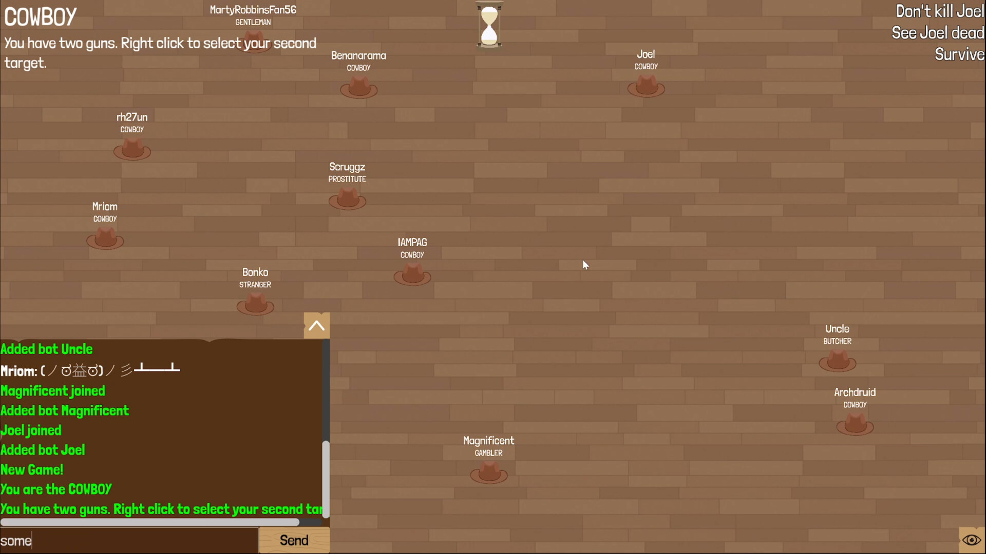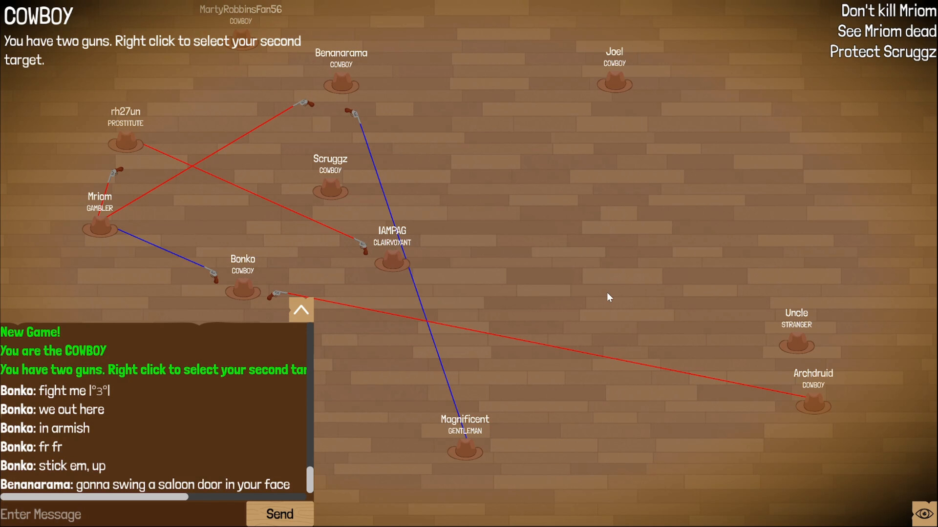 Guns aren't your only weapon - with over 10 roles with unique abilities you'll have no shortage of options, from the Clairvoyant who can see the future, to the Gentleman who can save others, but not himself. Your objectives for each round are randomly generated, so no two games play the same!