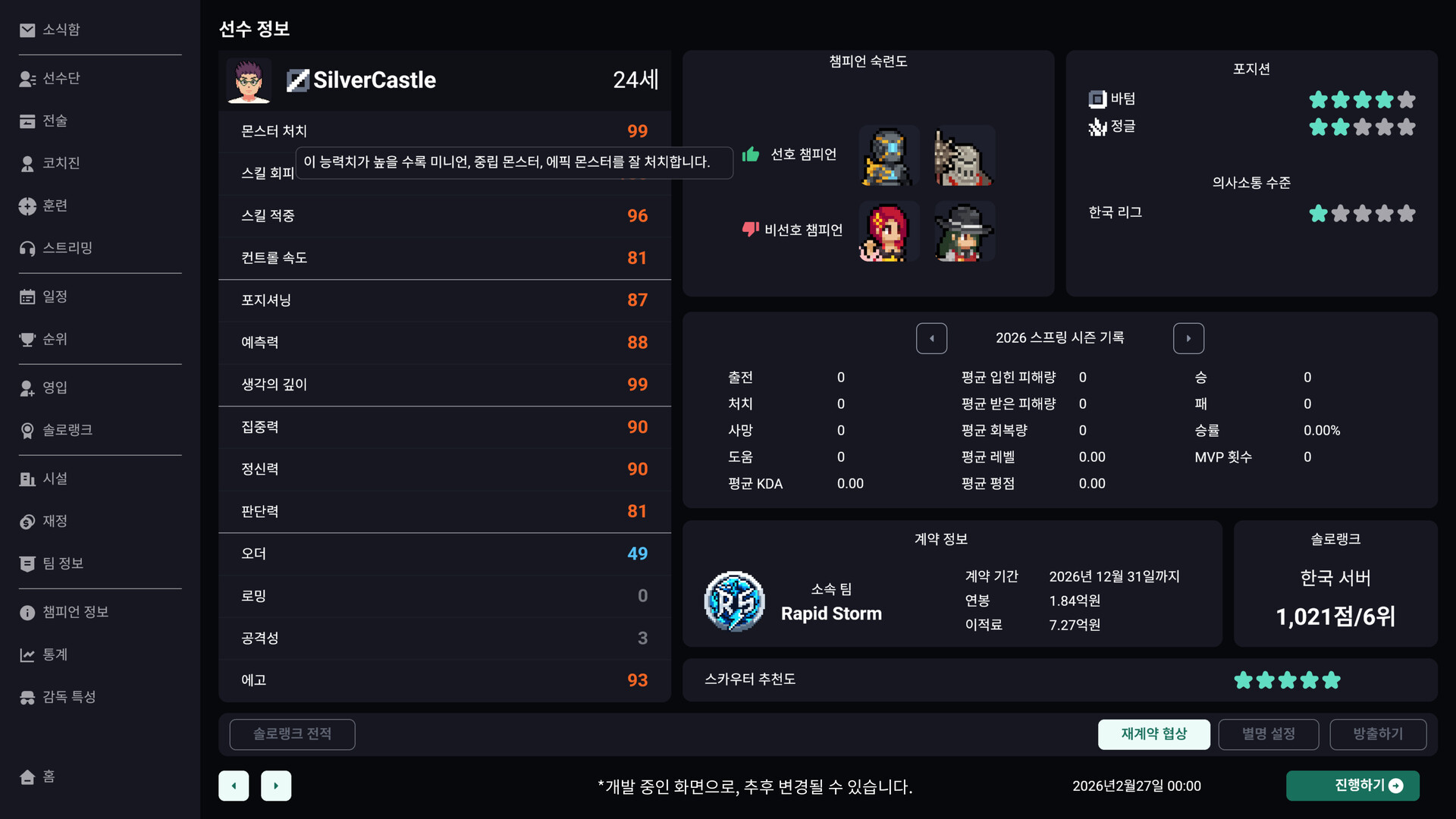 이 외에도 E-sports 팀의 감독으로서 몰입하기 위한 다양한 컨텐츠 및 개선사항들이 준비되어 있습니다.