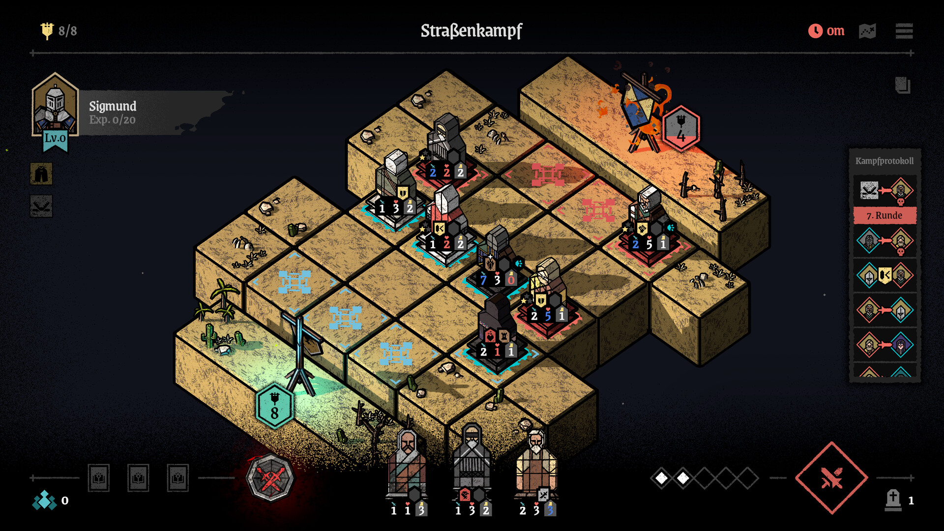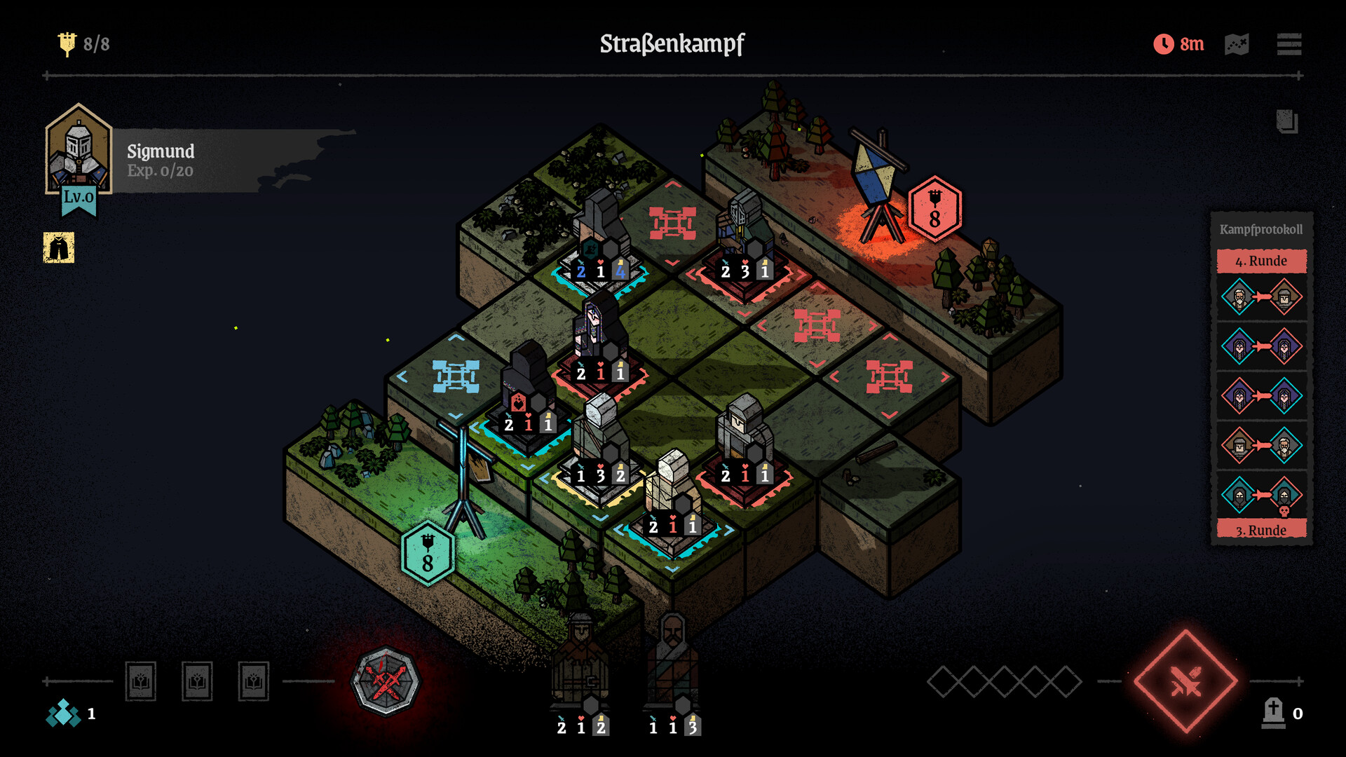 In jeder Runde verbrauchst du Aktionspunkte, um Söldner auf dem Schlachtfeld zu platzieren. Sobald der Kampf beginnt, handeln sie automatisch in Reihenfolge ihrer Geschwindigkeit – daher ist eine durchdachte Aufstellung entscheidend.